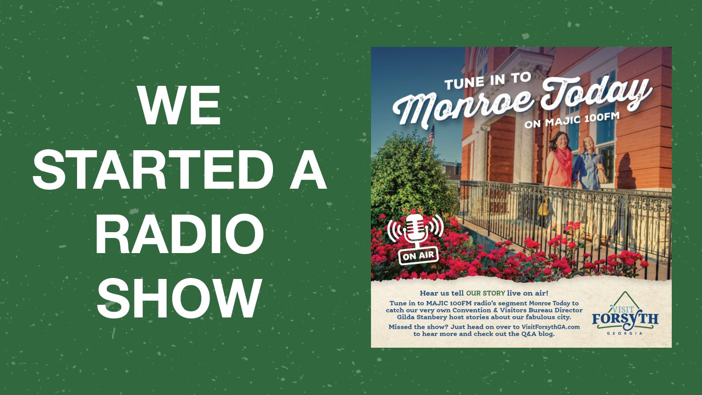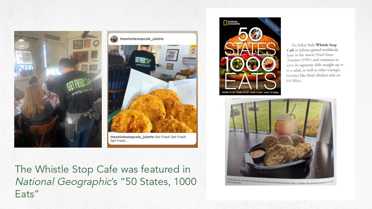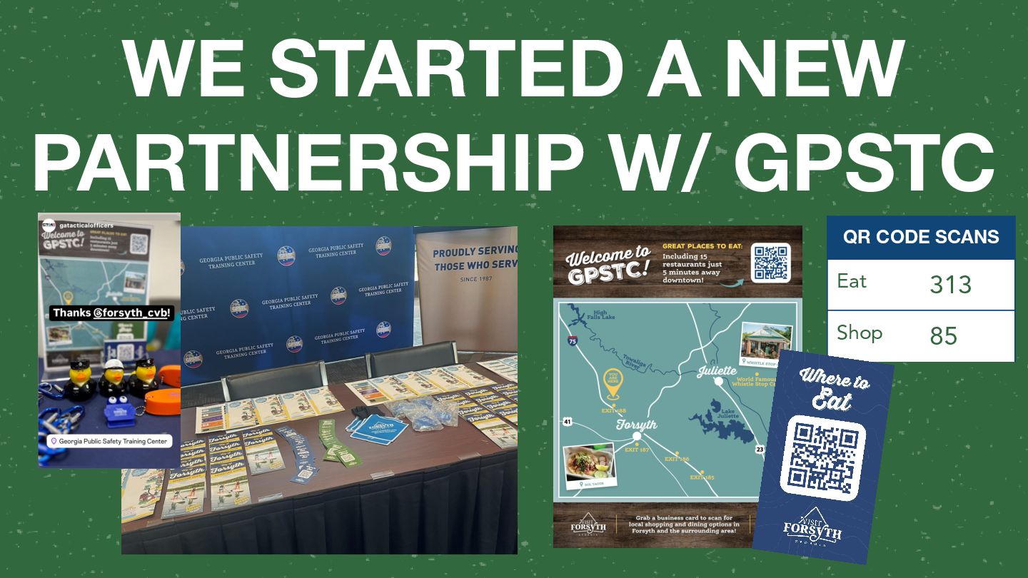 other materials promoting Forsyth and its tourism partners in the following places: ➤ Forsyth Welcome Center ➤ 1823 Artisan Guild & Gallery ➤ GPSTC ➤ Forsyth City Hall ➤ Monroe County Annex lobby ➤ 12 hotel & KOA lobbies ➤ State Regional VICs ◦ Augusta ◦ Columbus ◦ Lavonia ◦ Port Wentworth ◦ Ringgold ◦ St. Mary’s ◦ Tallapoosa ◦ Valdosta ◦ West Point ➤ SWAG bags for groups/events ➤ Chamber office ➤ Industrial Development Authority Office ➤ Whistle Stop Cafe in Juliette ➤ Honeycomb and shops in Juliette ➤ Hello Neighbor packets for newcomers