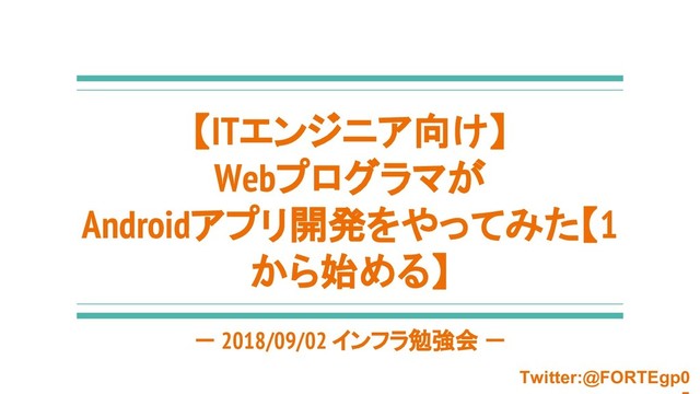 【ITエンジニア向け】 Webプログラマが Androidアプリ開発をやってみた【1 から始める】 - 2018/09/02 インフラ勉強会 - Twitter:@FORTEgp0