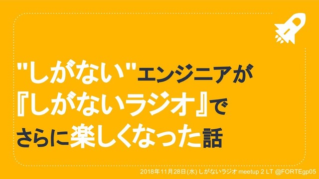 "しがない"エンジニアが 『しがないラジオ』で さらに楽しくなった話 2018年11月28日(水) しがないラジオmeetup 2 LT @FORTEgp05