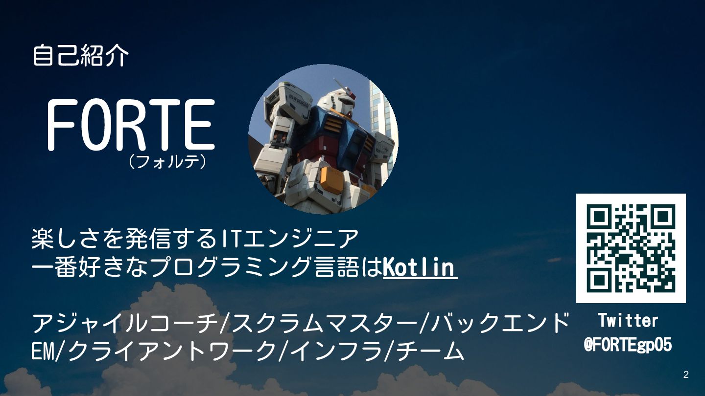 自己紹介 FORTE (フォルテ) 楽しさを発信するITエンジニア 一番好きなプログラミング言語はKotlin アジャイルコーチ/スクラムマスター/バックエンド EM/クライアントワーク/インフラ/チーム 2 Twitter @FORTEgp05