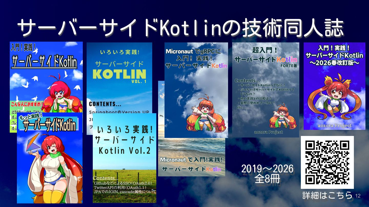サーバーサイドKotlinの技術同人誌 12 2019~2026 全8冊 詳細はこちら