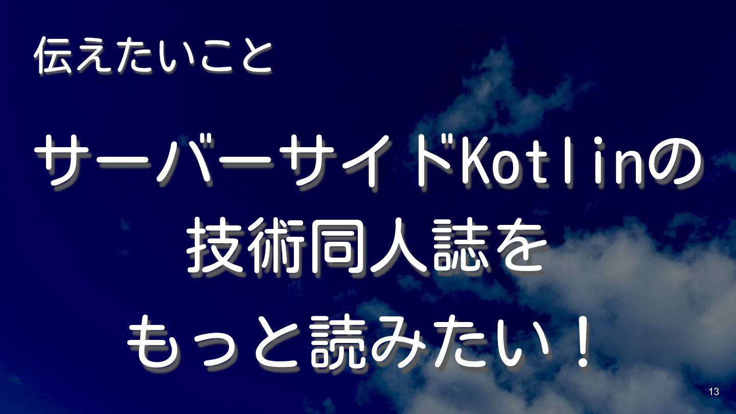 伝えたいこと 13 サーバーサイドKotlinの 技術同人誌を もっと読みたい!