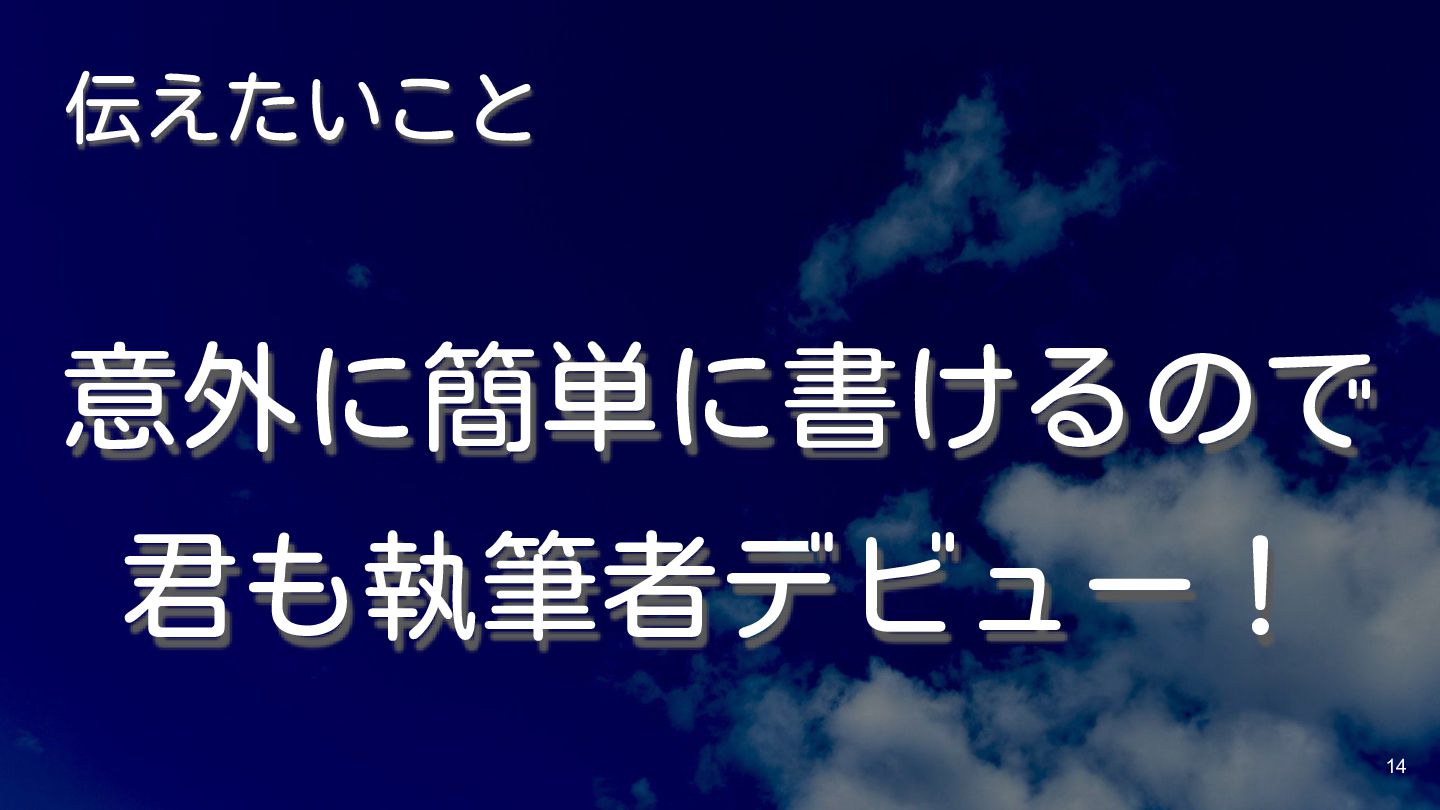 伝えたいこと 14 意外に簡単に書けるので 君も執筆者デビュー!