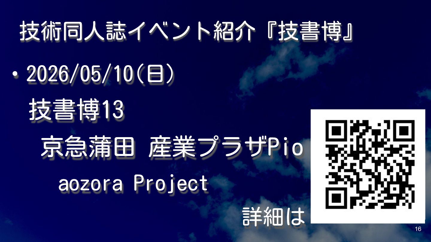 技術同人誌イベント紹介『技書博』 16 ・2026/05/10(日) 技書博13 京急蒲田 産業プラザPio aozora Project