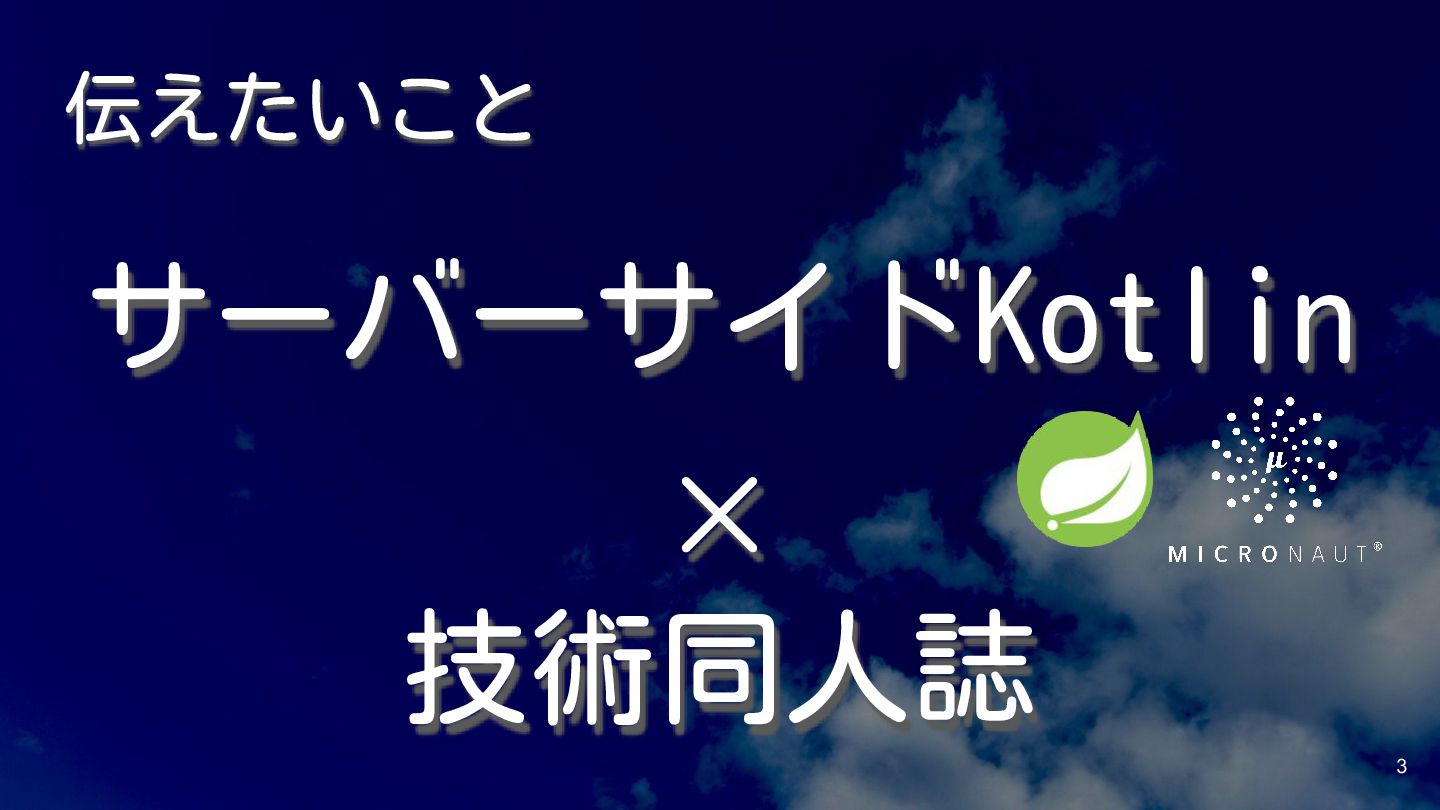 伝えたいこと 3 サーバーサイドKotlin × 技術同人誌