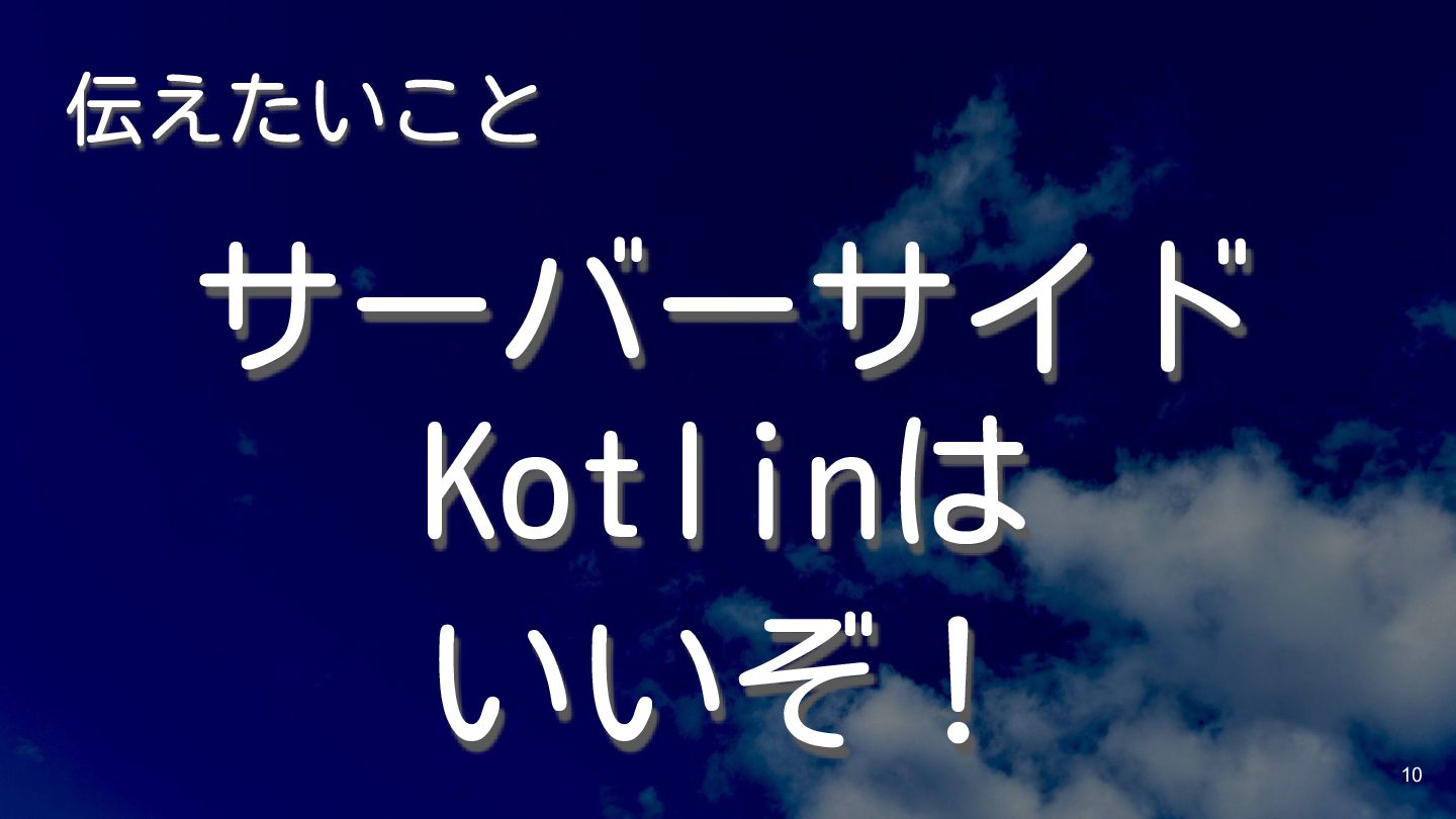 伝えたいこと 10 サーバーサイド Kotlinは いいぞ!