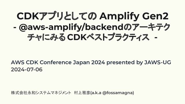 Stack } from 'aws-cdk-lib'; import { UserPool } from 'aws-cdk-lib/aws-cognito'; import { AmplifyData, AmplifyDataDefinition } from '@aws-amplify/data-construct'; const app = new App(); const stack = new Stack(app, 'TodoStack'); new AmplifyData(stack, 'TodoApp', { definition: AmplifyDataDefinition.fromString(/* GraphQL */ ` type Todo @model @auth(rules: [{ allow: owner }]) { description: String! completed: Boolean } `), authorizationModes: { userPoolConfig: { userPool: UserPool.fromUserPoolId(stack, 'ImportedUserPool', '<YOUR_USER_POOL_ID>'), }, }, }); • GraphQLのスキーマ定 義がTypeScriptではな いこと以外はほぼ Amplify Gen2と同じ • AppSync+DynamoDB というパターンに対して特 化した効果的なインタ フェース