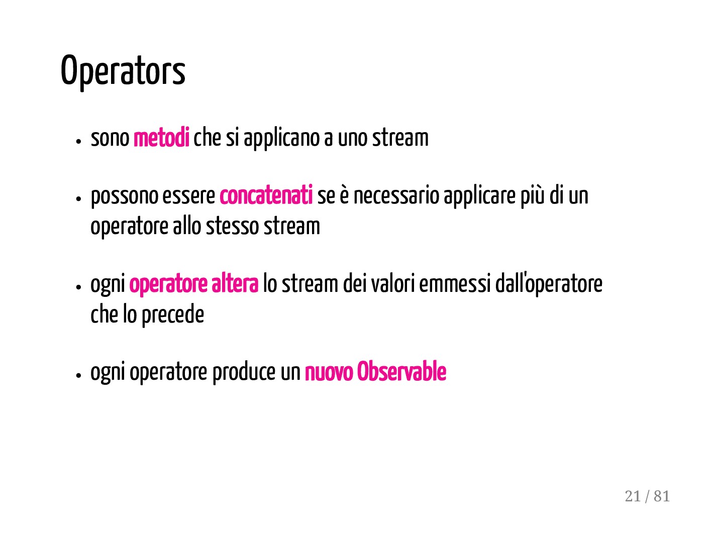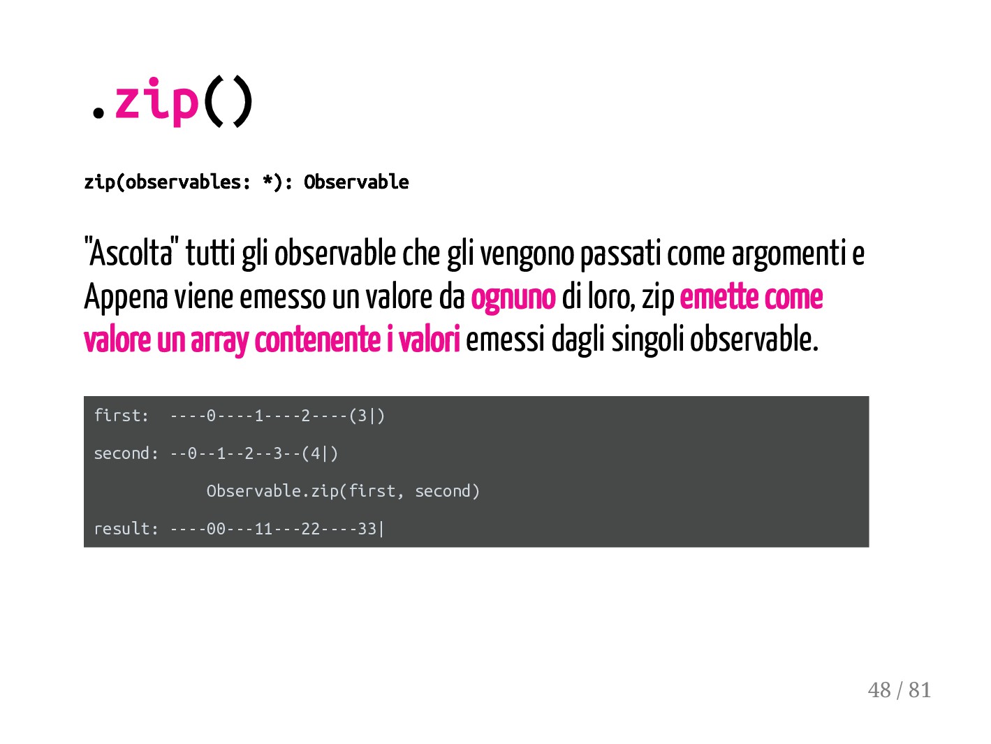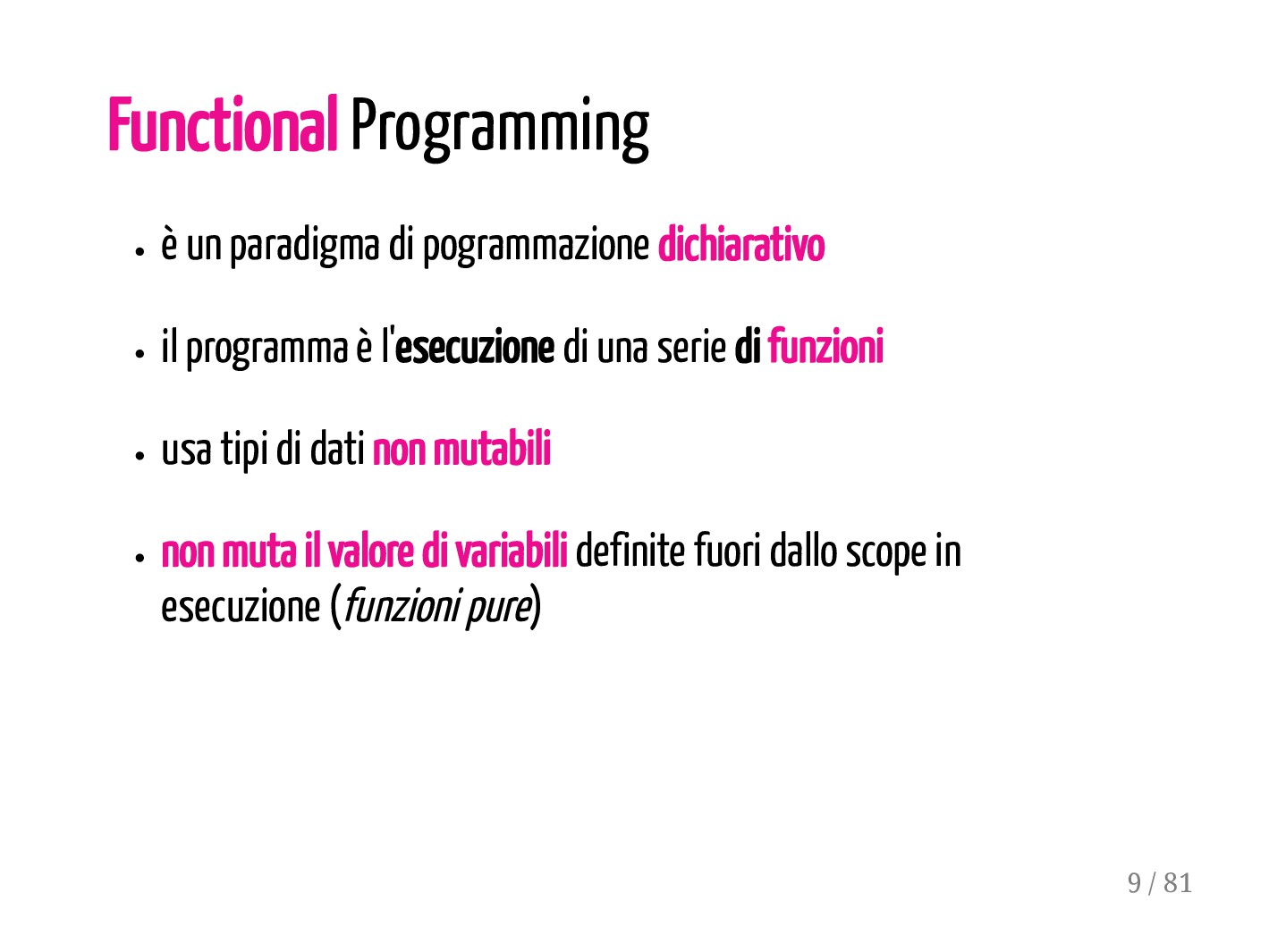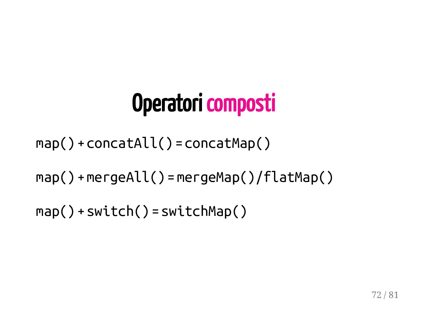 const source = ['1', '1', 'foo', '2', '3', '5', 'bar', '8', '13'] const result = source .map(x => parseInt(x)) // applica la funzione parseInt a ogni elemento //.filter(x => !isNaN(x)) //.reduce((x, y) => x + y) console.log(result) // logs: [1, 1, NaN, 2, 3, 5, NaN, 8, 13] 10 / 81