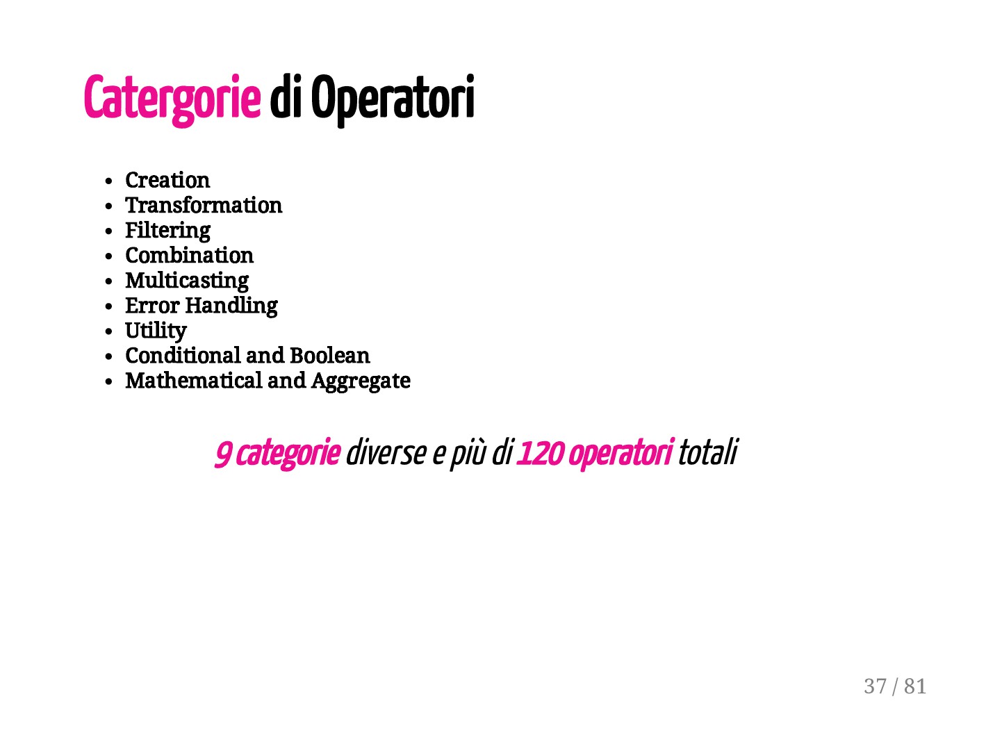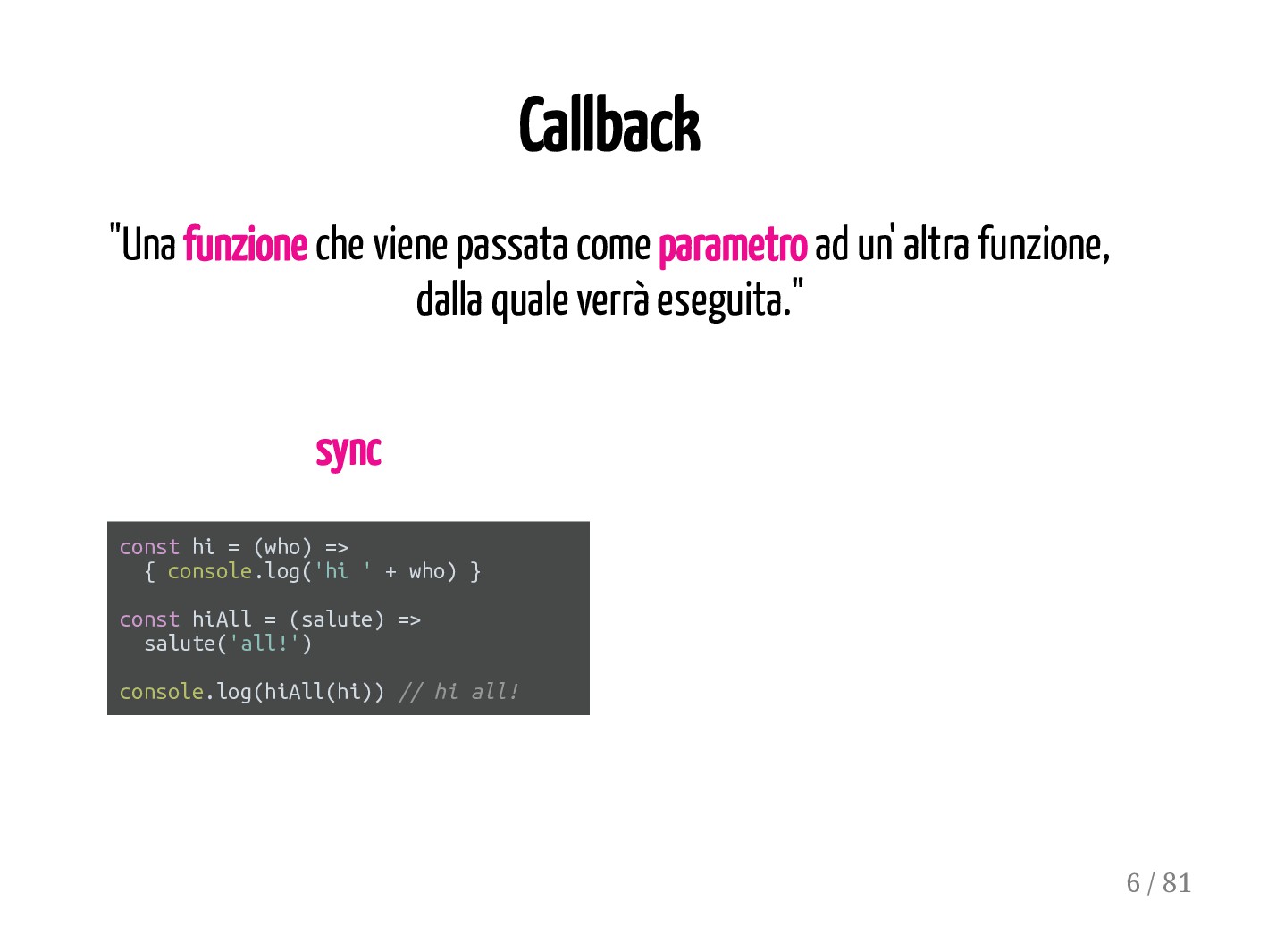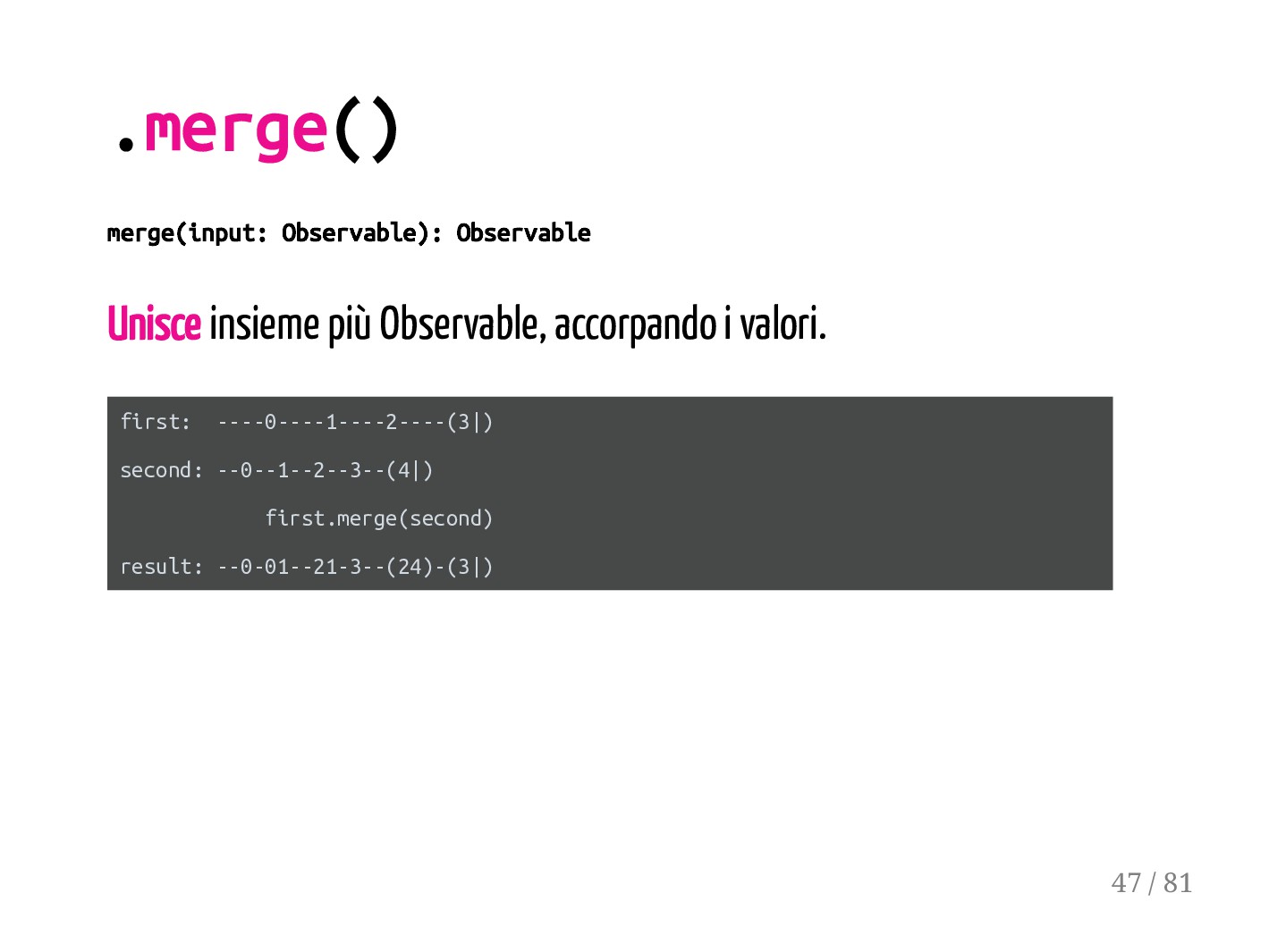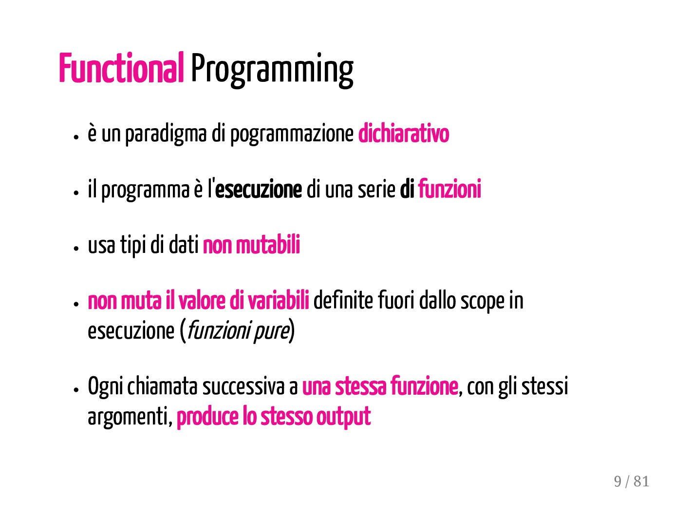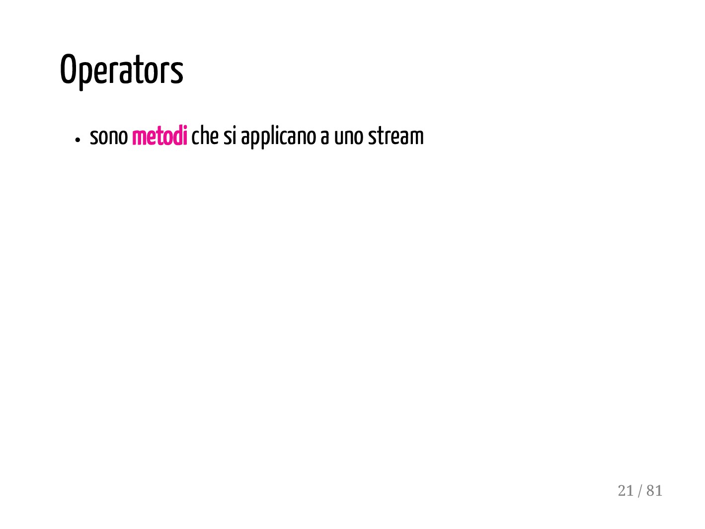 const source = ['1', '1', 'foo', '2', '3', '5', 'bar', '8', '13'] const result = source .map(x => parseInt(x)) // applica la funzione parseInt a ogni elemento //.filter(x => !isNaN(x)) //.reduce((x, y) => x + y) console.log(result) // logs: [1, 1, NaN, 2, 3, 5, NaN, 8, 13] 10 / 81