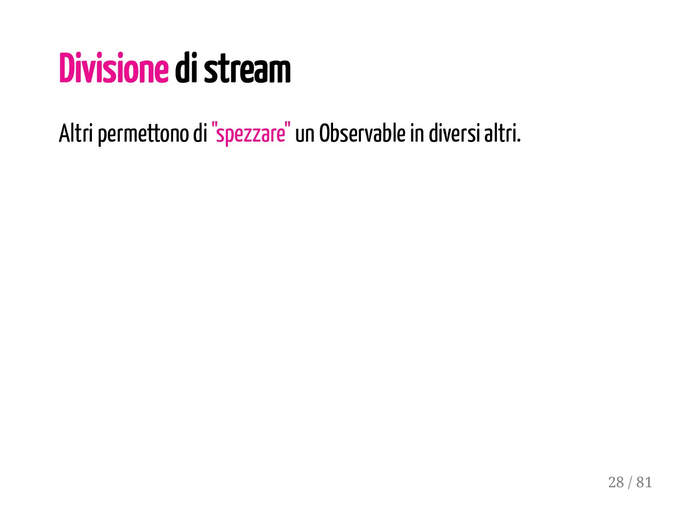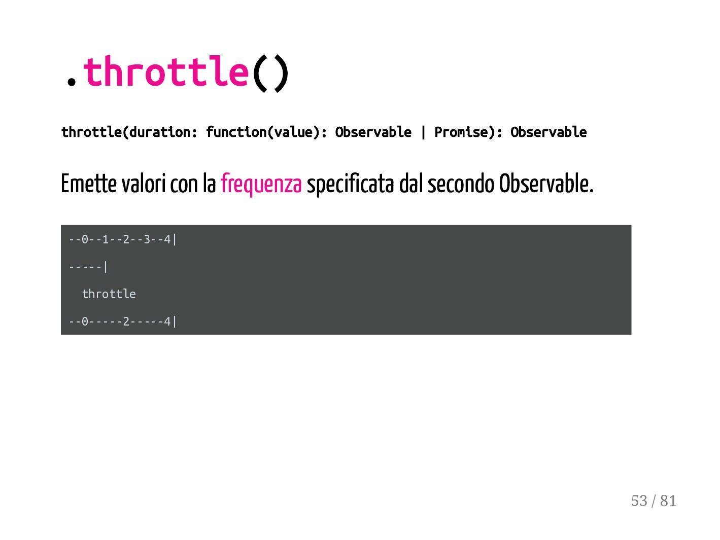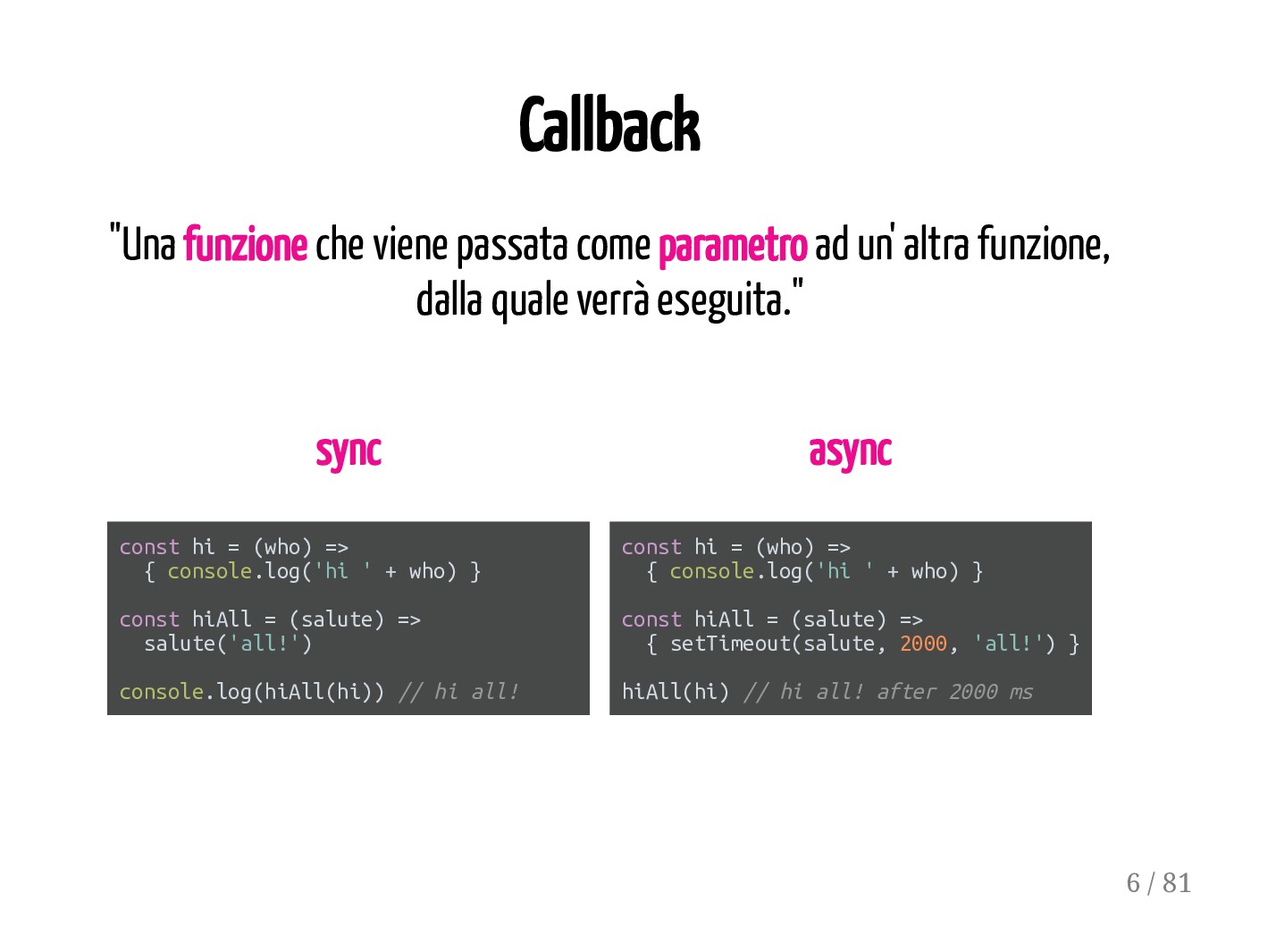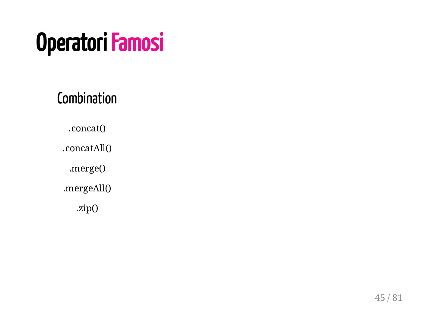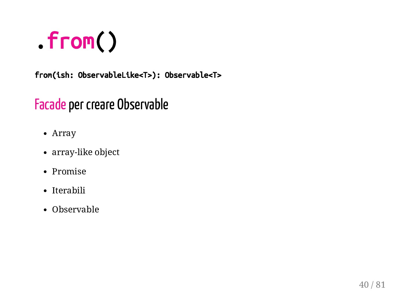 const source = ['1', '1', 'foo', '2', '3', '5', 'bar', '8', '13'] const result = source .map(x => parseInt(x)) // applica la funzione parseInt a ogni elemento //.filter(x => !isNaN(x)) //.reduce((x, y) => x + y) console.log(result) // logs: [1, 1, NaN, 2, 3, 5, NaN, 8, 13] 10 / 81