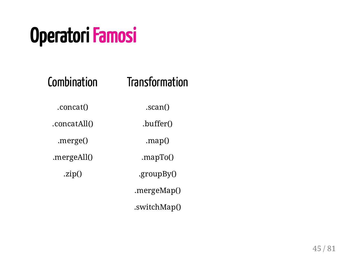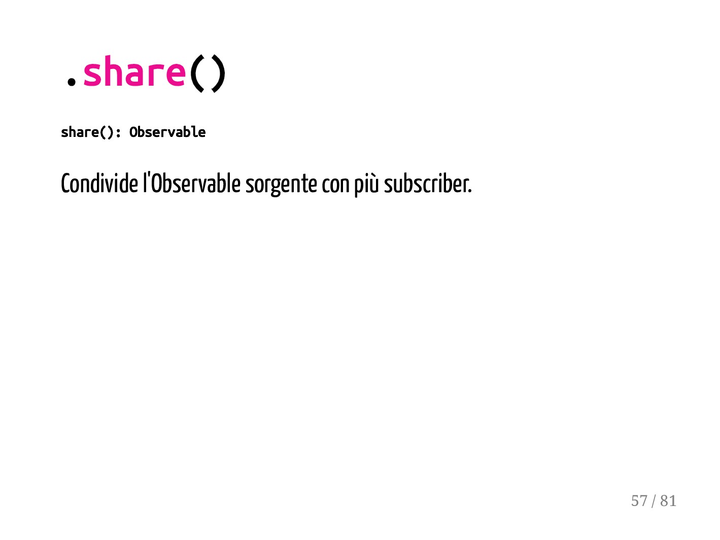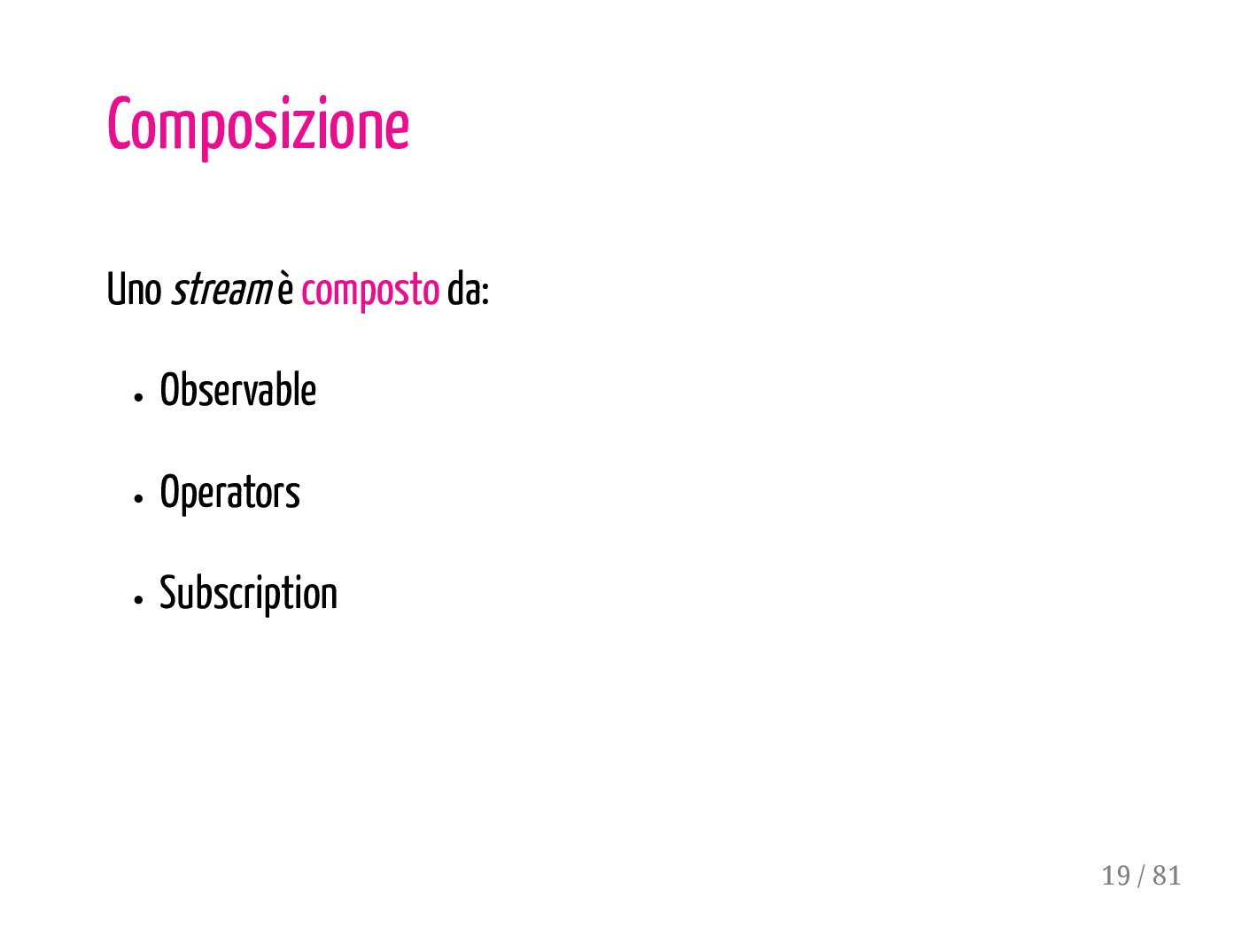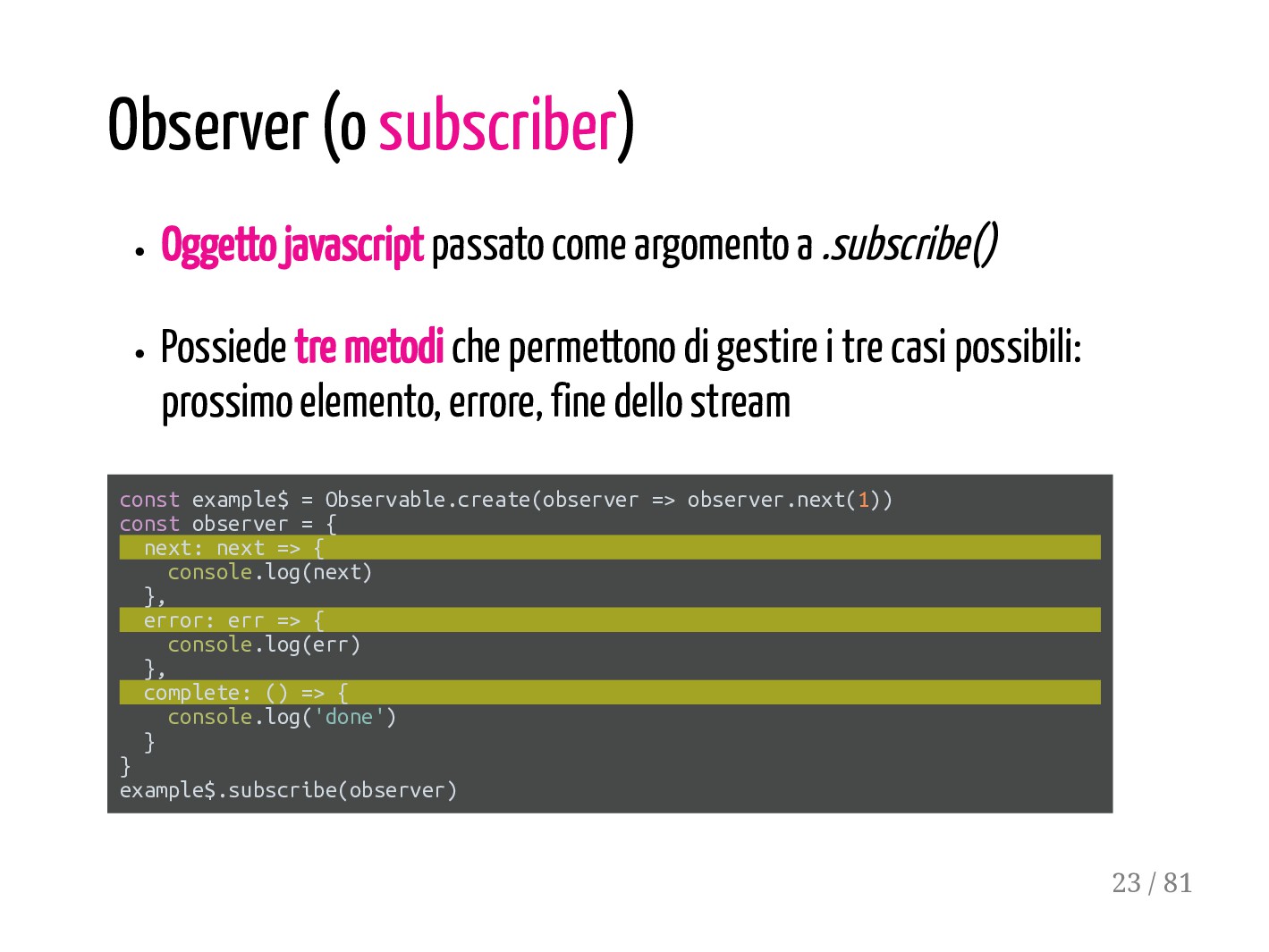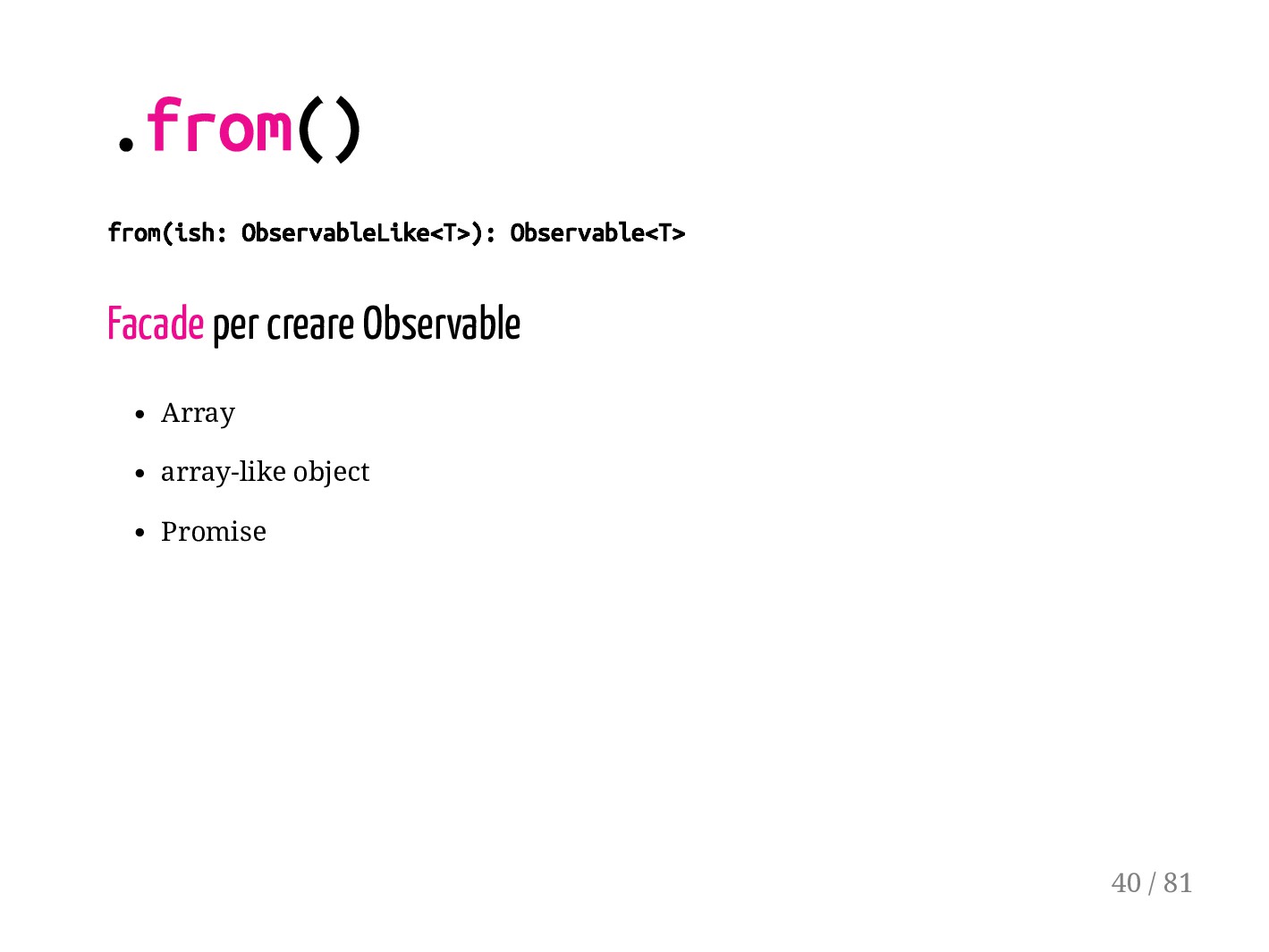 const source = ['1', '1', 'foo', '2', '3', '5', 'bar', '8', '13'] const result = source .map(x => parseInt(x)) // applica la funzione parseInt a ogni elemento //.filter(x => !isNaN(x)) //.reduce((x, y) => x + y) console.log(result) // logs: [1, 1, NaN, 2, 3, 5, NaN, 8, 13] 10 / 81