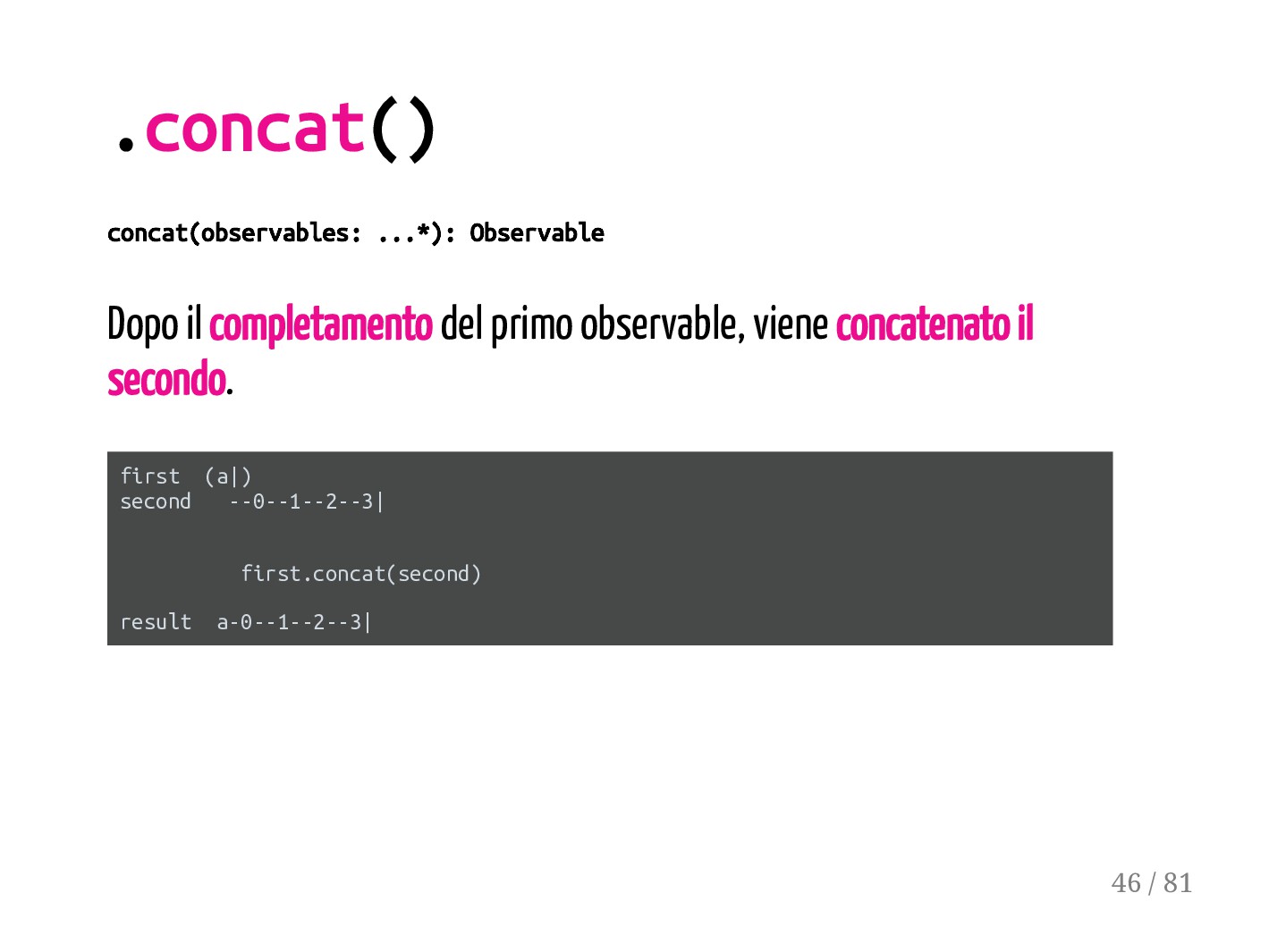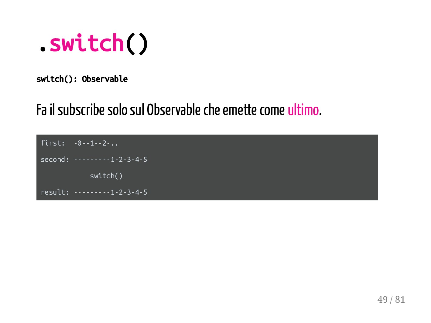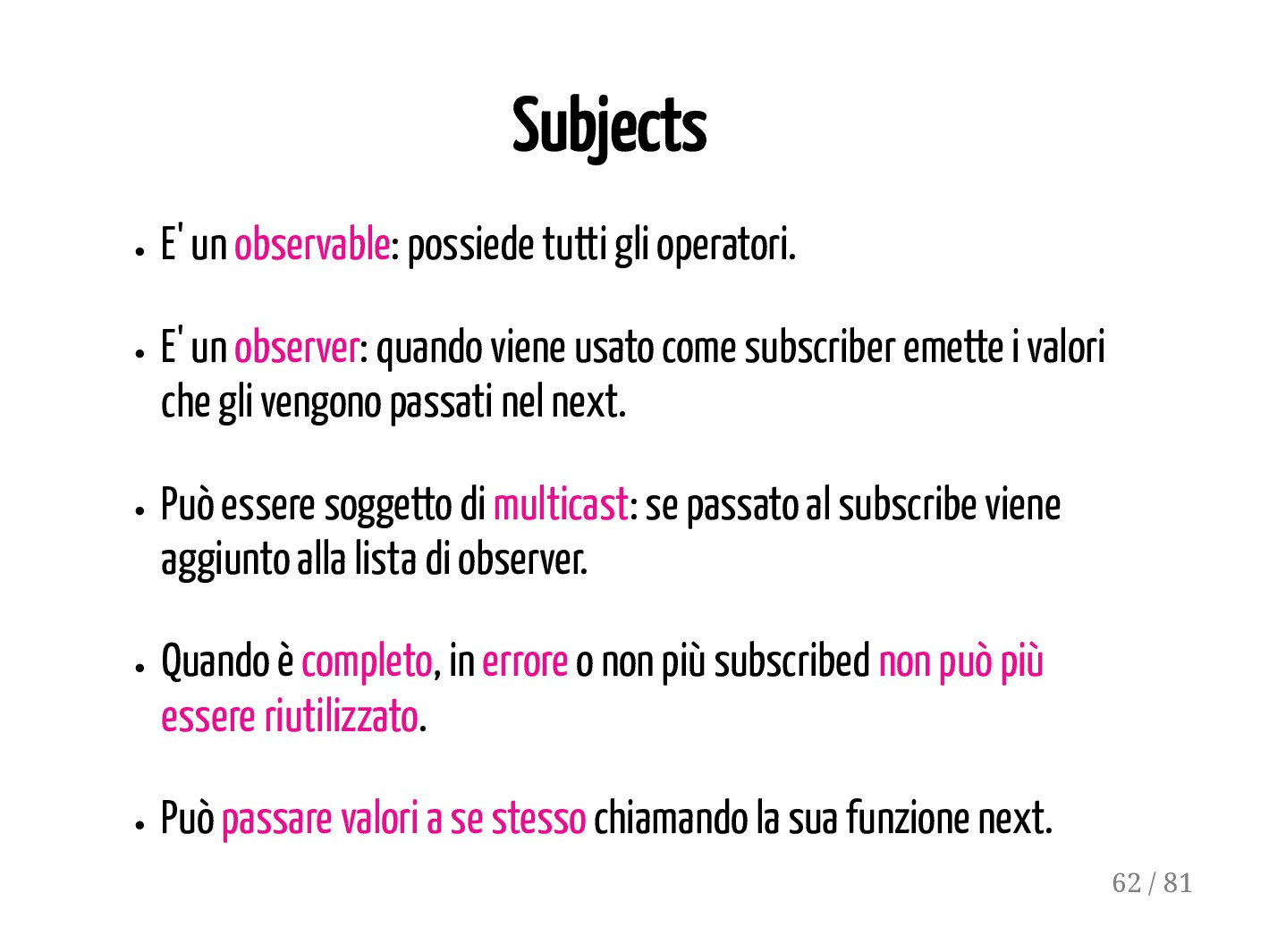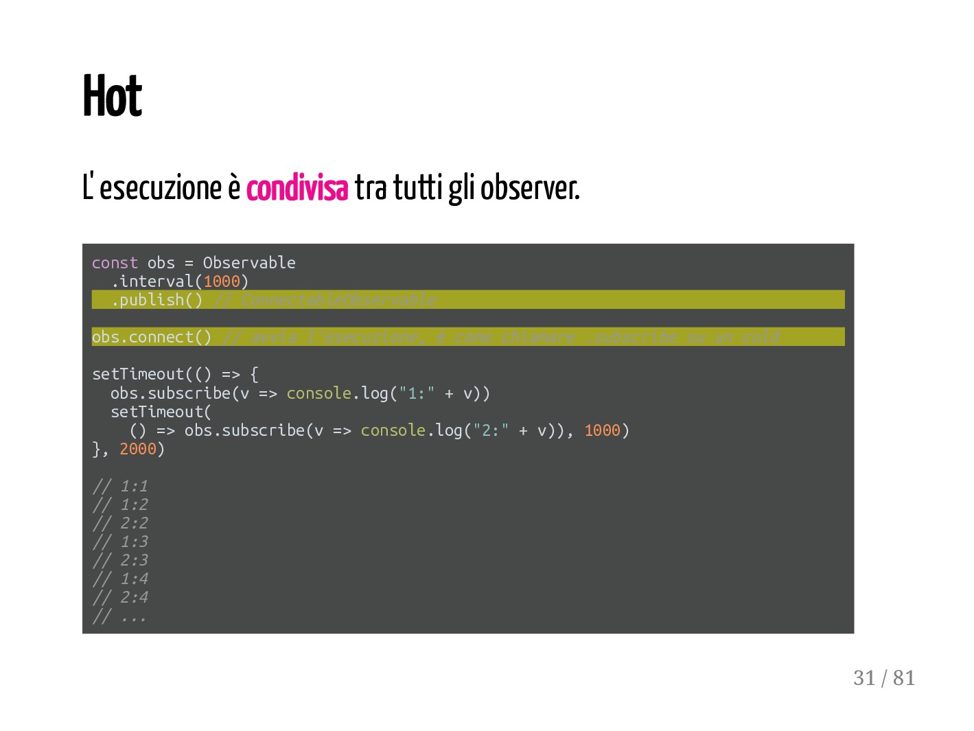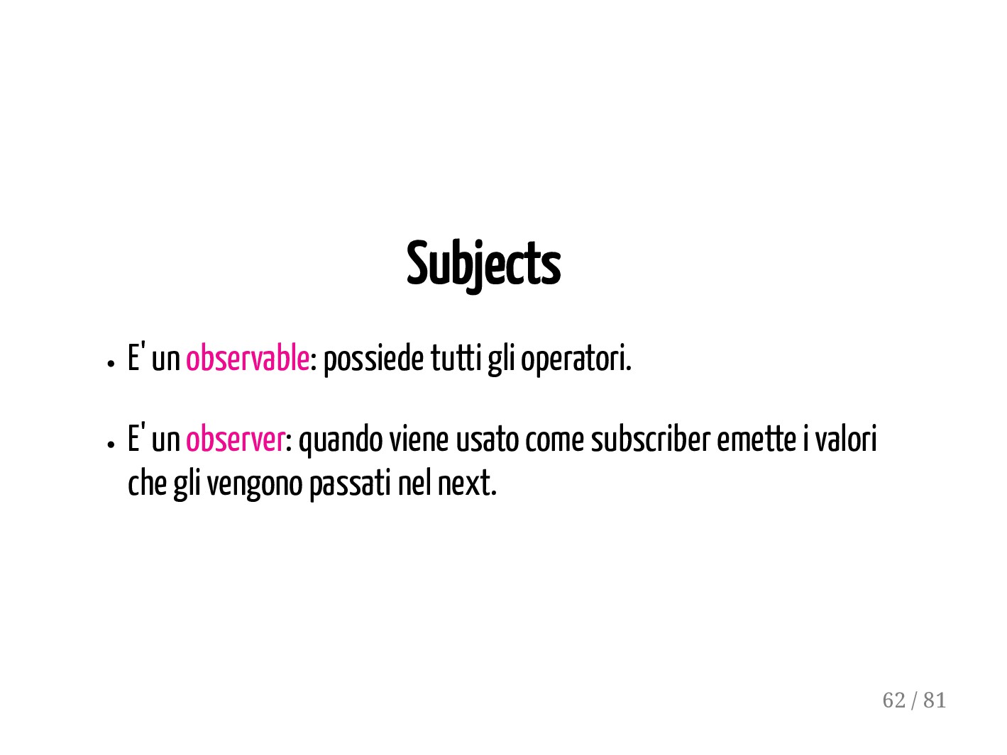 const source = ['1', '1', 'foo', '2', '3', '5', 'bar', '8', '13'] const result = source .map(x => parseInt(x)) // applica la funzione parseInt a ogni elemento //.filter(x => !isNaN(x)) //.reduce((x, y) => x + y) console.log(result) // logs: [1, 1, NaN, 2, 3, 5, NaN, 8, 13] 10 / 81