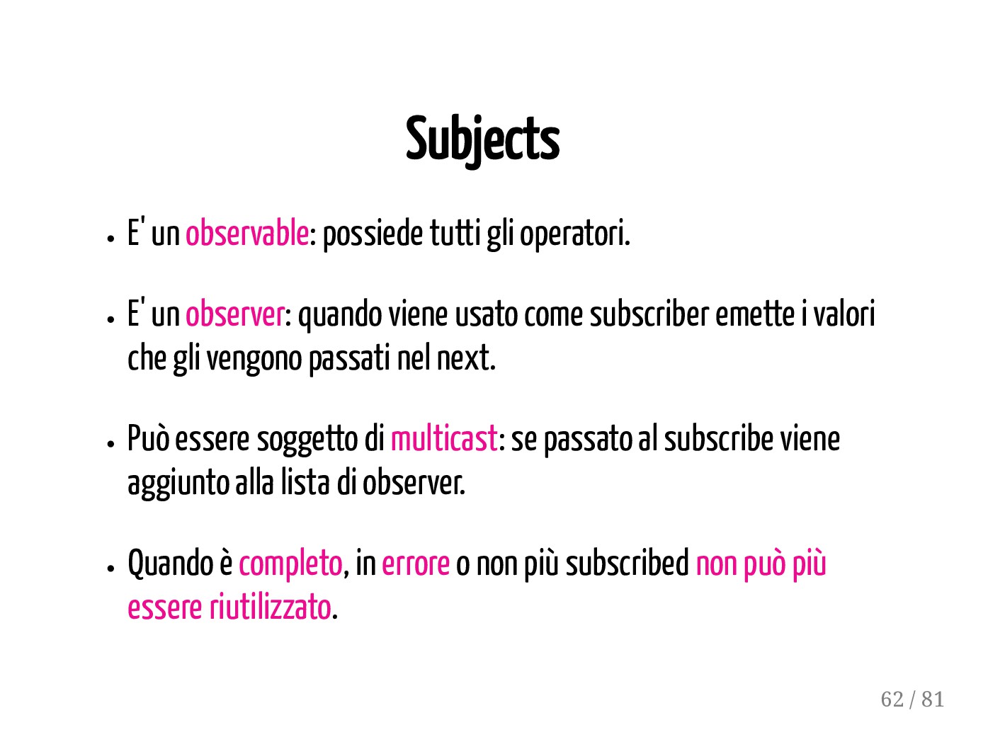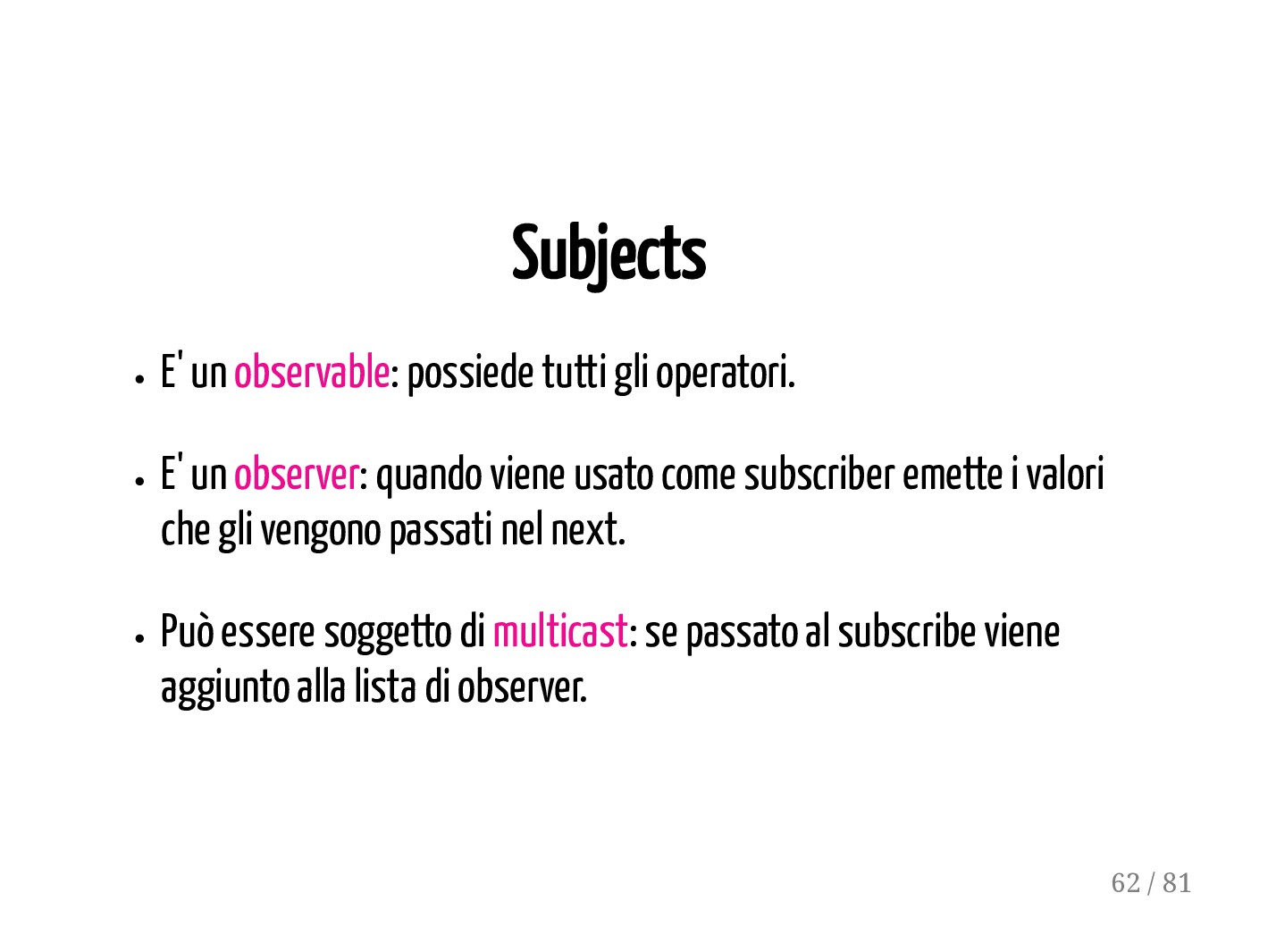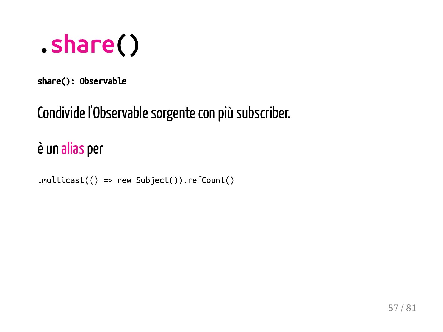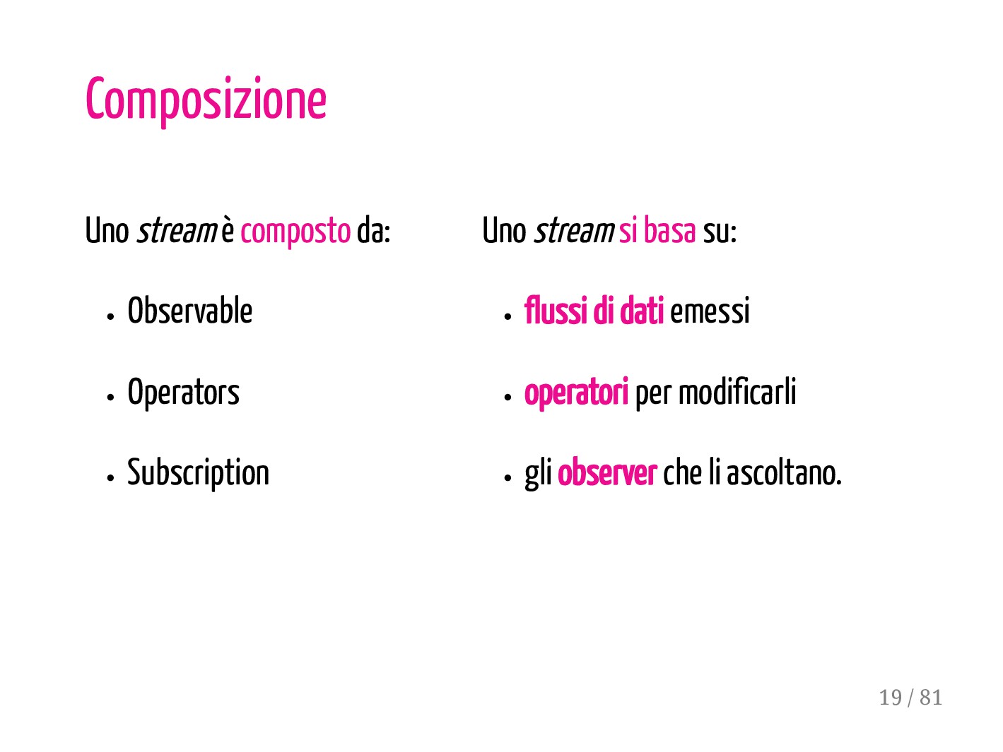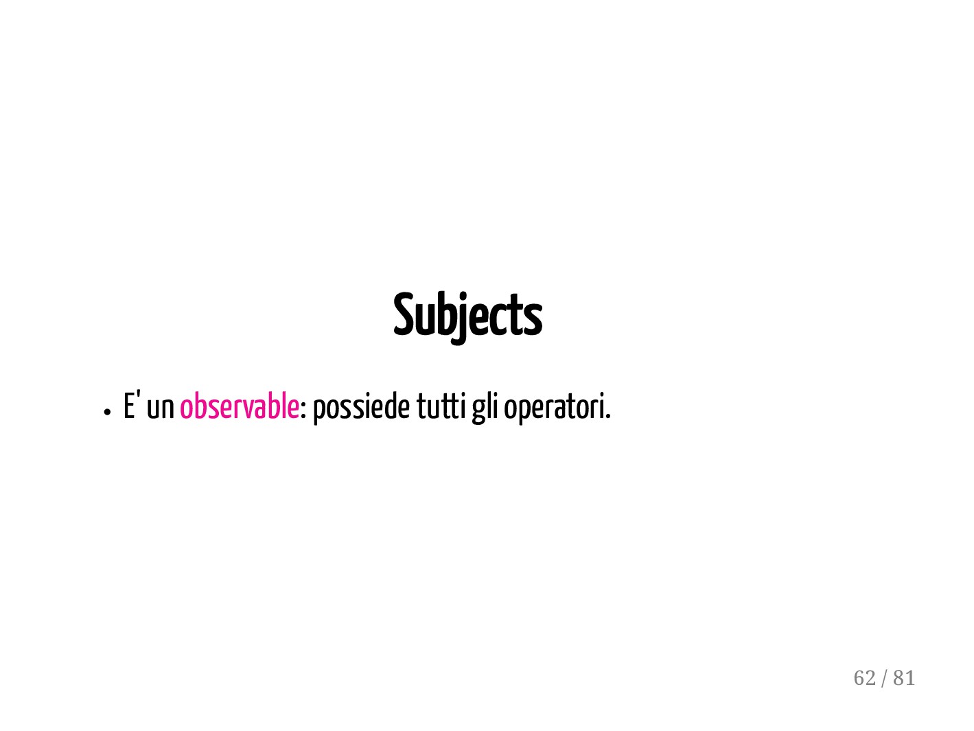 const source = ['1', '1', 'foo', '2', '3', '5', 'bar', '8', '13'] const result = source .map(x => parseInt(x)) // applica la funzione parseInt a ogni elemento //.filter(x => !isNaN(x)) //.reduce((x, y) => x + y) console.log(result) // logs: [1, 1, NaN, 2, 3, 5, NaN, 8, 13] 10 / 81