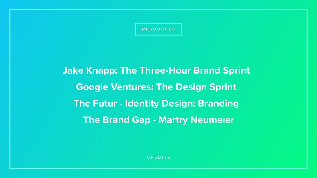 s p r i n t Competitive Landscape 30 MINS 7. Finally, plot your own company on the matrix. This should be fairly easy — after all, you’ve just been doing brand exercises for 150 minutes. 5. One at a time, place the sticky notes on the matrix. Quickly discuss where it should go. Repeat. 6. Once all the sticky notes are up, the facilitator should ask the Decider if she’d like to move any of the notes. 8. Double-check: Look back at the rest of the sprint exercises. Does this placement make sense for your 20- Y ear Roadmap, What How Why, Values, Audience, and Brand Sliders?
