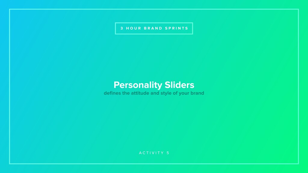 s p r i n t Personality Sliders 30 MINS 6. At the end of the discussion, the Decider makes the call. She should be given a few minutes to quietly plot her final choices on the whiteboard. 7. Take a photo of the whiteboard and add it to the slide deck.