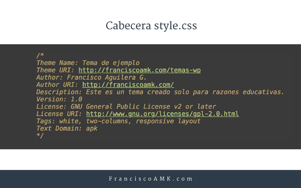 c o A M K . c o m DESARROLLANDO TU PRIMER TEMA DE WORDPRESS con Francisco Aguilera G.