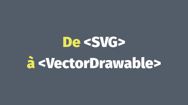 so we can use vector Resources static { AppCompatDelegate.setCompatVectorFromResourcesEnabled(true); } demande à la support lib de hacker l'inflation de drawables quand c'est possible, pour qu'elle prenne en charge les selectors contenant des svgs (on verra ensuite pourquoi c'est très utile)