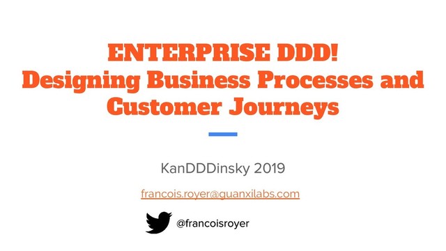 This talk is for you if: 1) you already use Domain-Driven Design to ease collaboration between developers and subject matter experts, and 2) you need to convince a greater audience across the enterprise of DDD's value proposition. Together we'll go through two "killer use cases" that can help increase adoption. We will first look at business process re-engineering and workflow migration to the Cloud, then dive into customer journey design and how to improve UX and user paths across systems and APIs. We will use Event Storming and introduce some extra notations to turn DDD concepts into dynamic workflows.