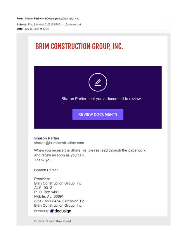 link to Docusign. Please do not share this email, link, or access code with others. Alternate Signing Method Visit Docusign.com, click 'Access Documents', and enter the security code: 50F101A1D4574B20953FC766B93957313 About Docusign Sign documents electronically in just minutes. It's safe, secure, and legally binding. Whether you're in an office, at home, on-the-go -- or even across the globe -- Docusign provides a professional trusted solution for Digital Transaction Management™. Questions about the Document? If you need to modify the document or have questions about the details in the document, please reach out to the sender by emailing them directly. Stop receiving this email Report this email or read more about Declining to sign and Managing notifications. If you have trouble signing, visit "How to Sign a Document" on our Docusign Support Center, or become part of the Docusign Community to access tips and guidance from peers. Download the Docusign App This message was sent to you by Cristina Carrick who is using the Docusign Electronic Signature Service. If you would rather not receive email from this sender you may contact the sender with your request.