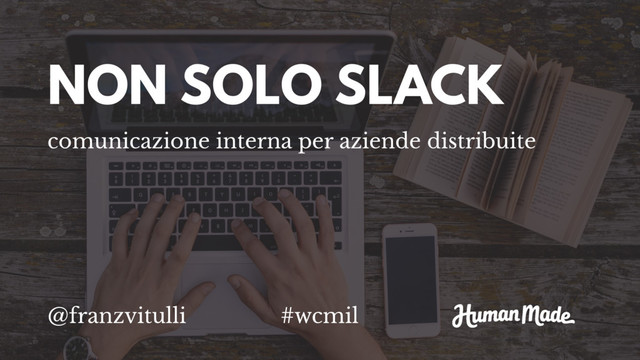 In questo talk ho illustrato come interagiamo internamente a Human Made. Strumenti, meccanismi e strategie, senza perdere di vista ciò che conta davvero: chiarezza nelle informazioni, efficacia nelle comunicazioni e rispetto reciproco. Con un occhio di riguardo alle sfide con cui un’azienda che lavora in remoto deve fare i conti quotidianamente: diverse culture, diversi stili di vita, diversi fusi orari.