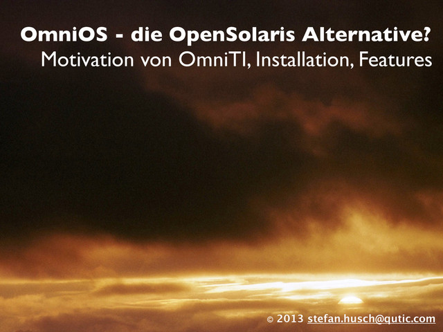 and we fix it - that´s our job“ ‣ OmniTI hatte Rechenzentren voll mit OpenSolaris-Maschinen ‣ „Where do we switch to? FreeBSD, Oracle Solaris, Linux?“ ‣ „Always want my options open - no vendor lock-in“ ‣ „Linux KVM overhead was too much for us“ ‣ „I need Open Source“ ‣ „It´s a business model - we are cashflow positive“ ‣ Commercial Support