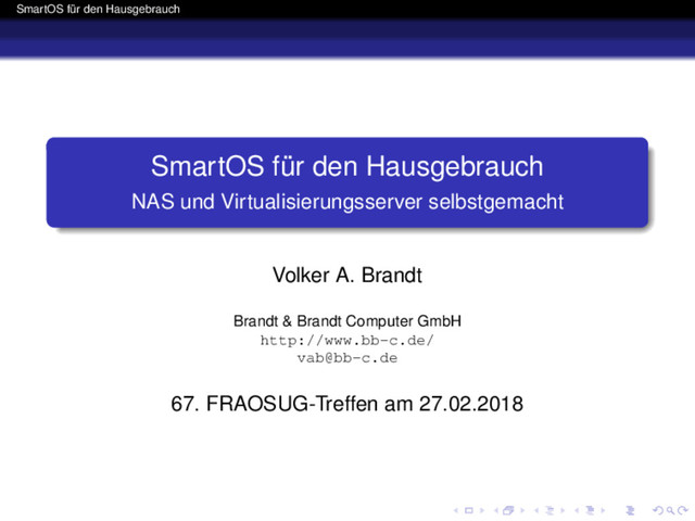 Ich möchte den Einsatz von SmartOS auf einem Microserver für diesen Einsatzzweck vorstellen und zeigen, daß man mit wenig Aufwand ein flexibles und performantes System bekommt, das mit jedem "Kauf-NAS" locker mithalten kann.