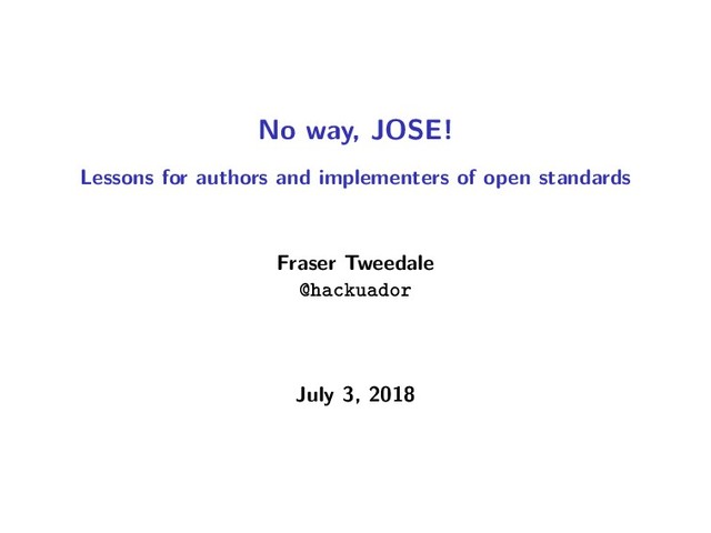 - the flawed rationale for the JOSE working group