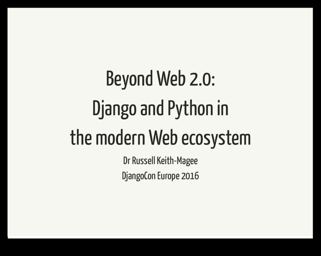 Video: http://opbeat.com/community/posts/beyond-web-2-0-django-and-python-in-the-modern-web-ecosystem-by-russell-keith-magee/