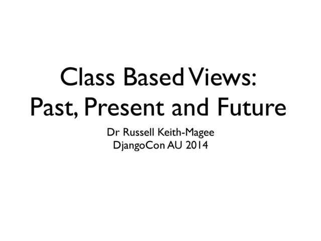 In this talk, we'll look at the history that led to the development of Class-Based Views, and the current state of play. We'll look at some interesting design patterns that are possible by exploiting the features of Class-Based views. And we'll look to what the future could hold for Django's Class-based future.