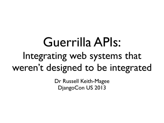 In this talk, Russell Keith-Magee will explore some unorthodox techniques for extracting and inserting information into the sort of systems you see in the real world outside Silicon Valley -- systems that don't provide a nice ReSTful API.