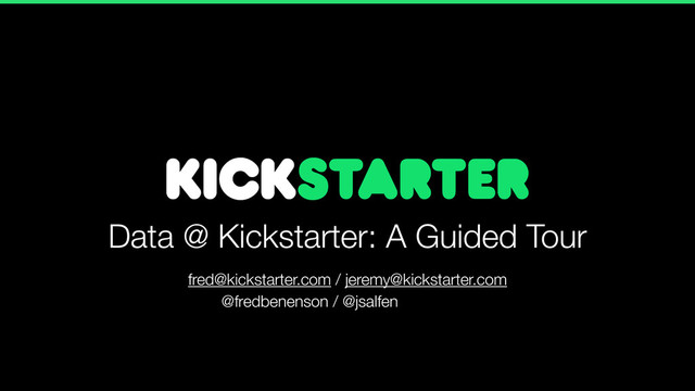 A high level presentation about how we're working with data at Kickstarter. Includes details on our events stack, some ETL, Redshift queries, and our process of handling and processing data requests internally.