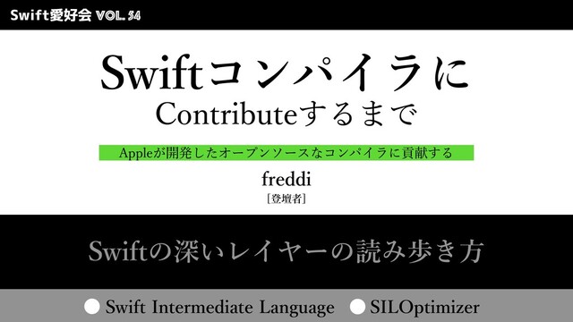 4XJGUίϯύΠϥʹ $POUSJCVUF͢Δ·Ͱ Swift愛好会 Vol. 54 "QQMF͕։ൃͨ͠ΦʔϓϯιʔεͳίϯύΠϥʹߩݙ͢Δ GSFEEJ <ొஃऀ> ͔ΜͨΜͳ 4XJGUͷਂ͍ϨΠϠʔͷಡΈา͖ํ