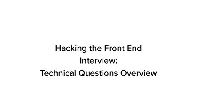 loop • Event bubbling • Apply, call, and bind • Callbacks and promises • Variable and function hoisting • Currying JavaScript Question Topics ForwardJS Hacking the Front End Interview