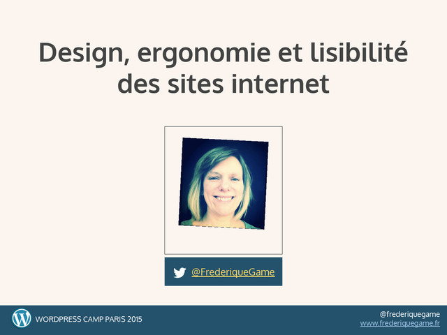 et compréhensible. C’est centrer la réflexion sur le destinataire du contenu. La lisibilité WORDPRESS CAMP PARIS 2015 @frederiquegame www.frederiquegame.fr