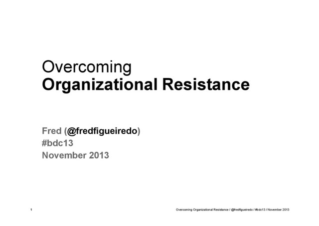 The added value of Agile & Lean Software Development, User Experience, and other practices is continuously overlooked by most corporations. As a result, released products & services fail to meet end users' requirements and lack competitive advantage in already saturated markets. From small to large corporations, how can such methodologies and practitioners survive dynamically changing organizations, silos, or business goals? Research shows that resistance comes from specific individuals from these organizations. From over 12 years working within several organizations, this deck focuses on the barriers, tools and steps at your disposal to gain a wider acceptance of these methodologies in your own organization.
