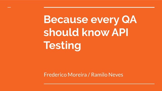 Because every QA should know API Testing Frederico Moreira /