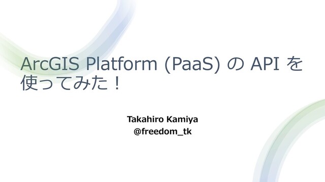 Web の地図サービスプラット フォーム • 開発者向けにロケーションサービスを提供する PaaS (Platform as a Service) • Leaflet、OpenLayers、Mapbox GL JS などの オープンソースの利⽤が可能 • REST API のため、サードパーティなどの外部 サービスへの組み込みも可能 • API キーによる認証⽅式 https://developers.arcgis.com/