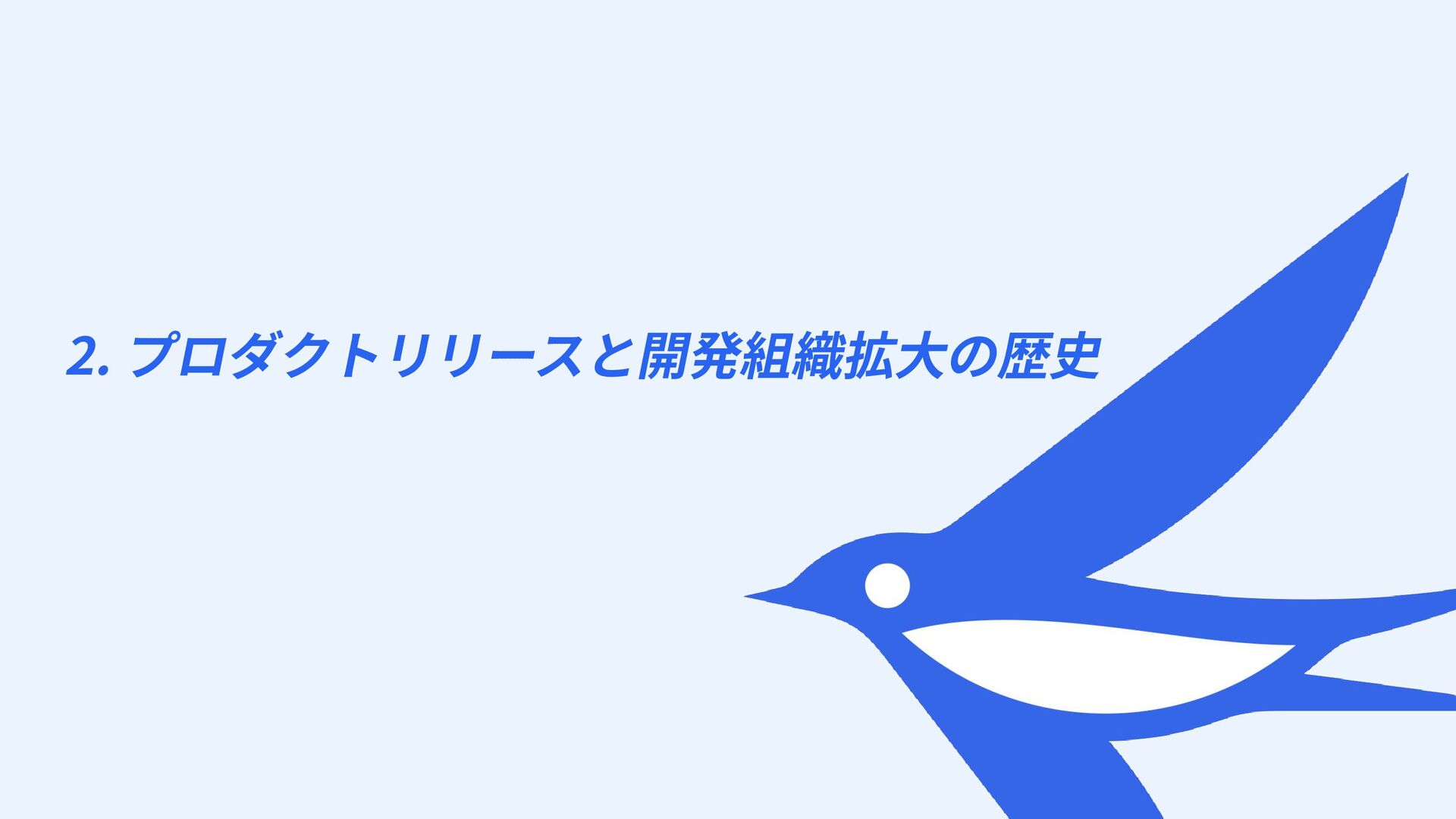 2. プロダクトリリースと開発組織拡⼤の歴史