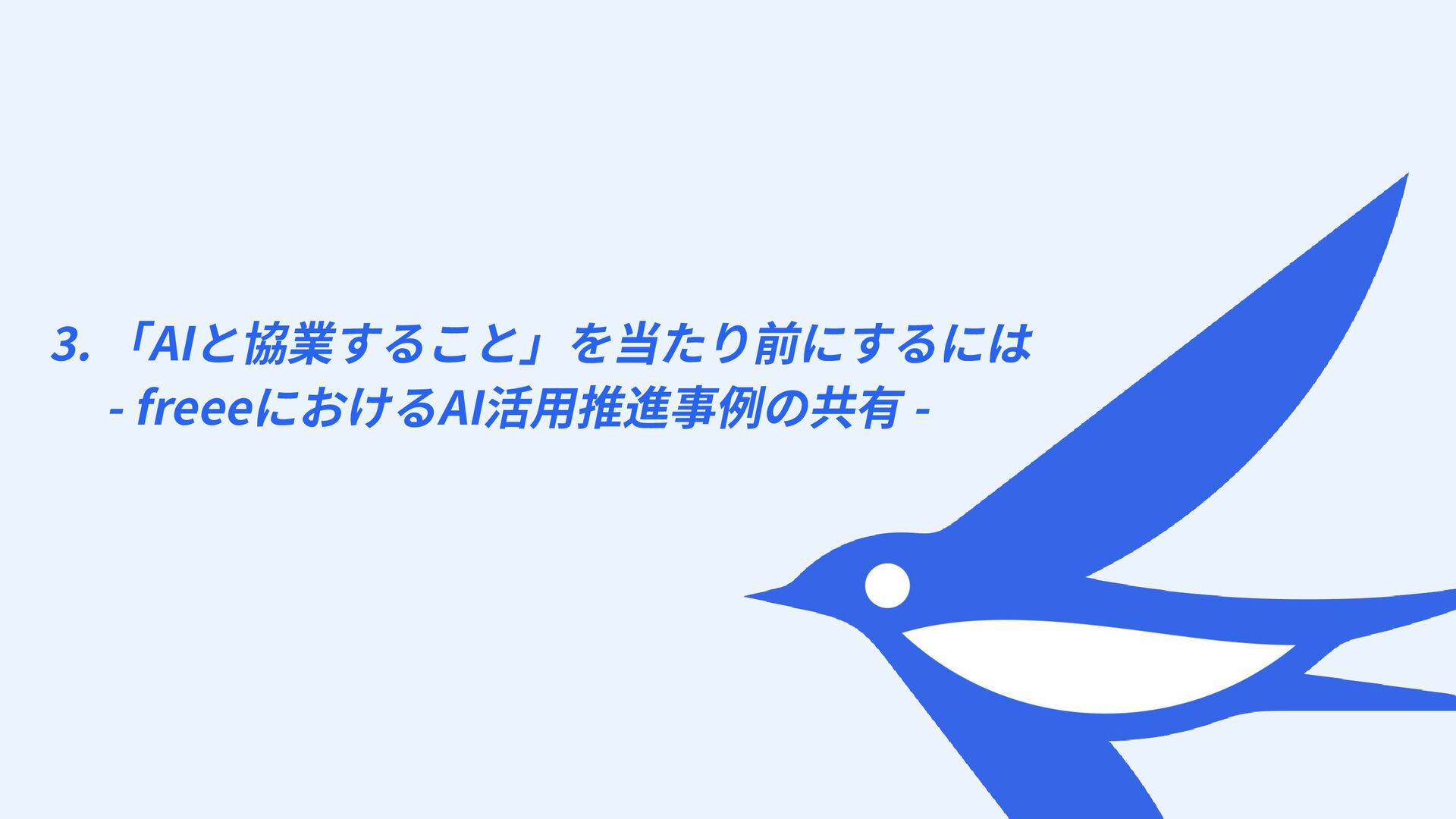 3. 「AIと協業すること」を当たり前にするには - freeeにおけるAI活⽤推進事例の共有 -