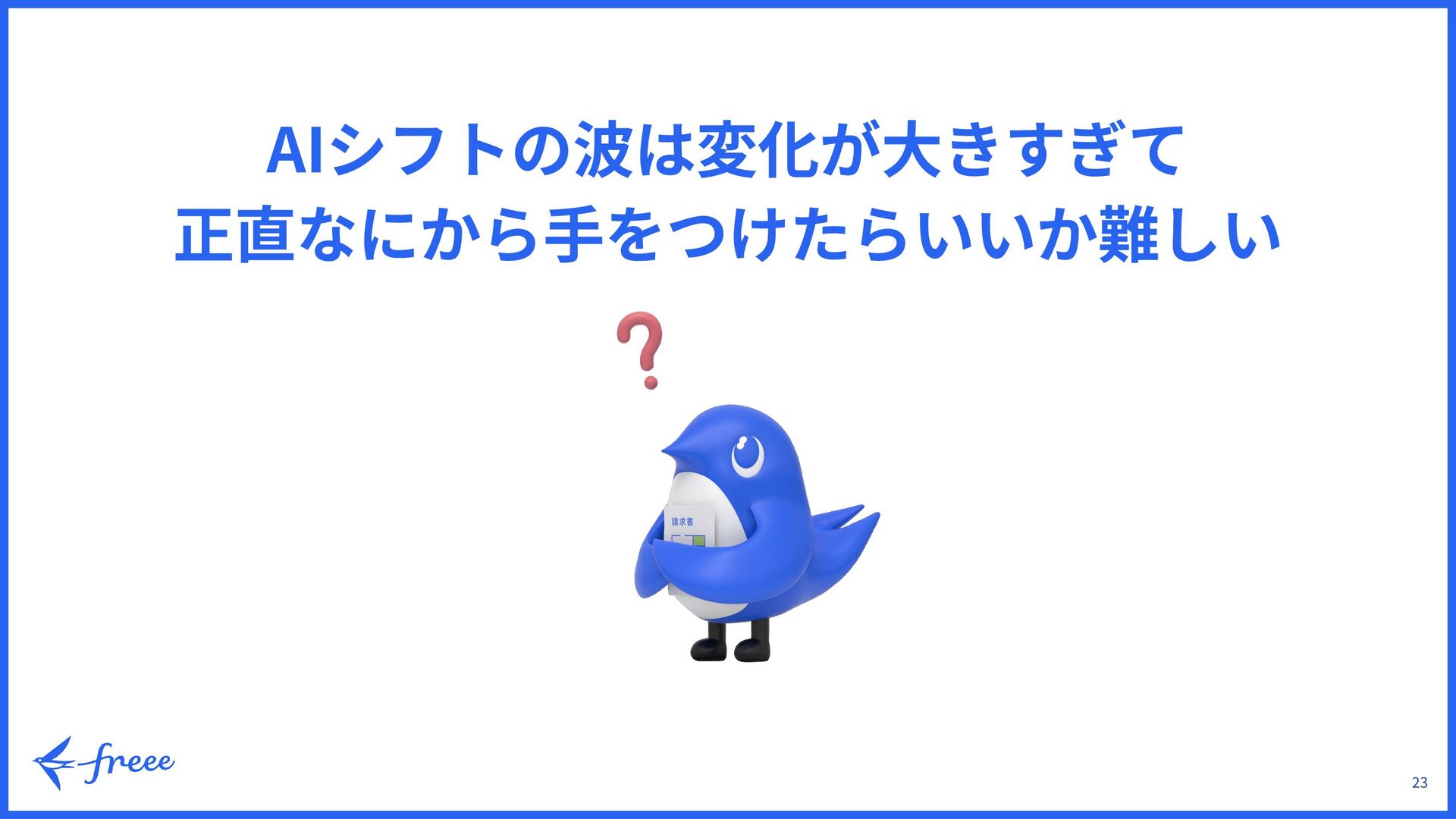 23 AIシフトの波は変化が⼤きすぎて 正直なにから⼿をつけたらいいか難しい