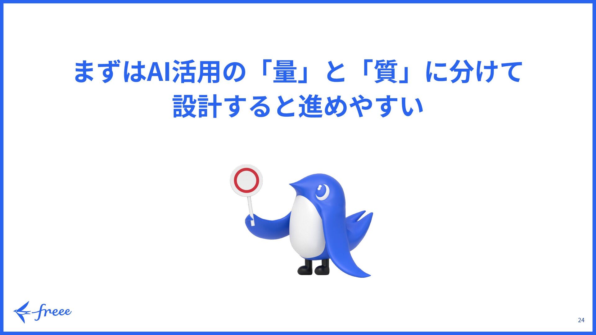 24 まずはAI活⽤の「量」と「質」に分けて 設計すると進めやすい