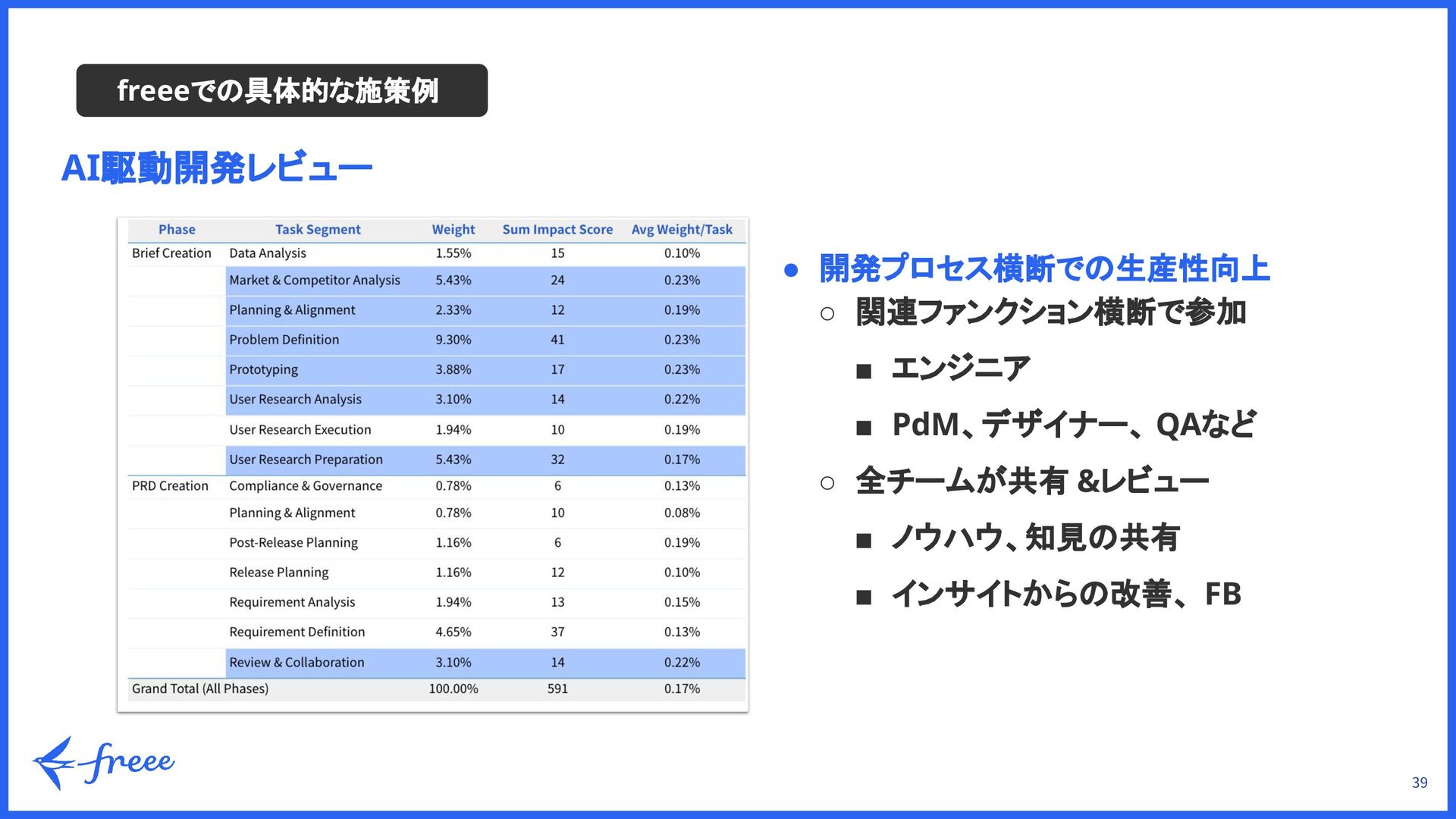 39 AI駆動開発レビュー freeeでの具体的な施策例 • 開発プロセス横断での生産性向上 ◦ 関連ファンクション横断で参加