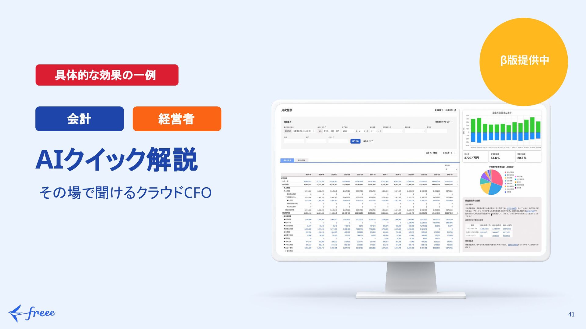 41 AIクイック解説 会計 経営者 その場で聞けるクラウドCFO β版提供中 具体的な効果の一例