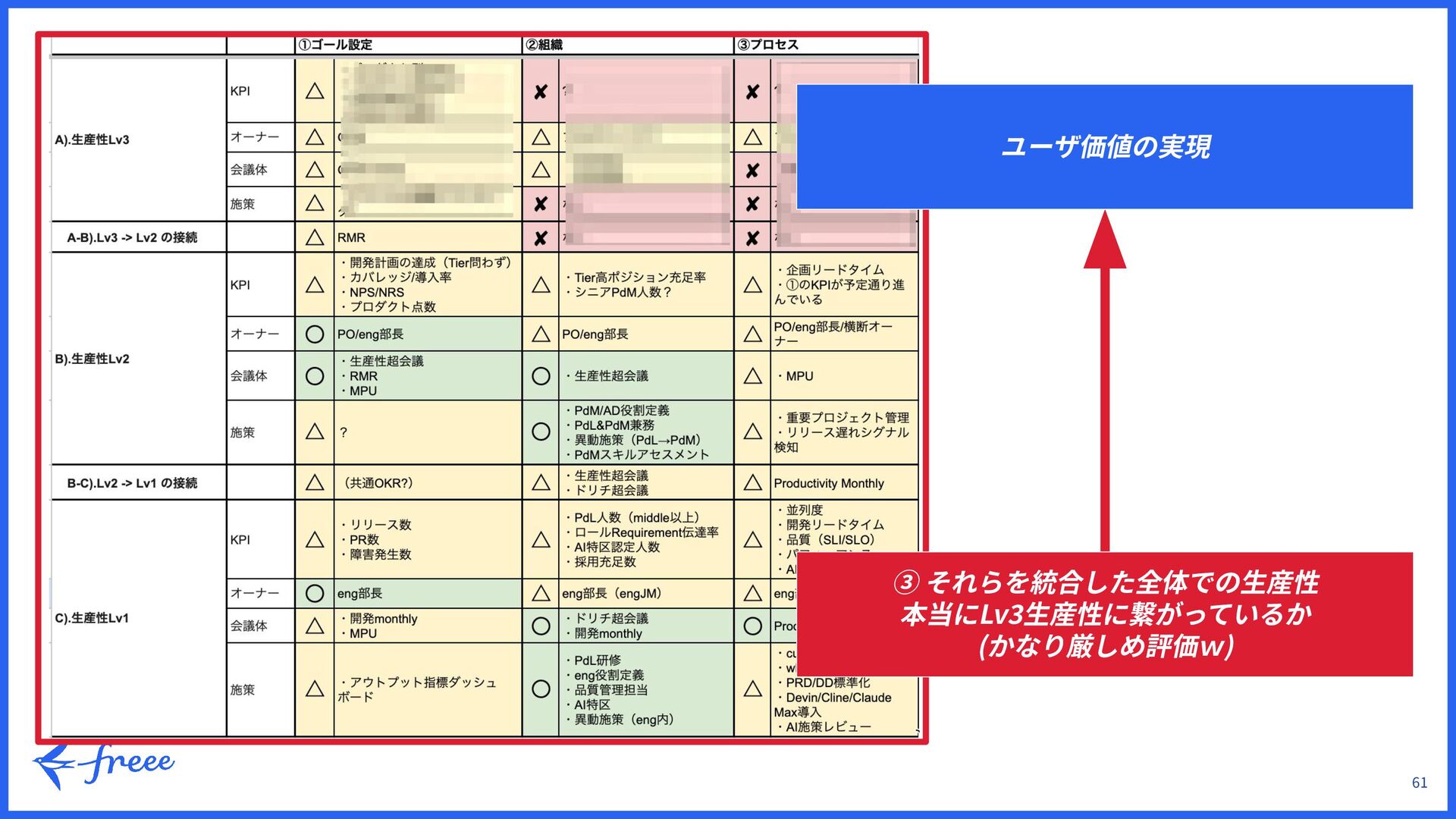 61 ③ それらを統合した全体での⽣産性 本当にLv3⽣産性に繋がっているか (かなり厳しめ評価w) ユーザ価値の実現