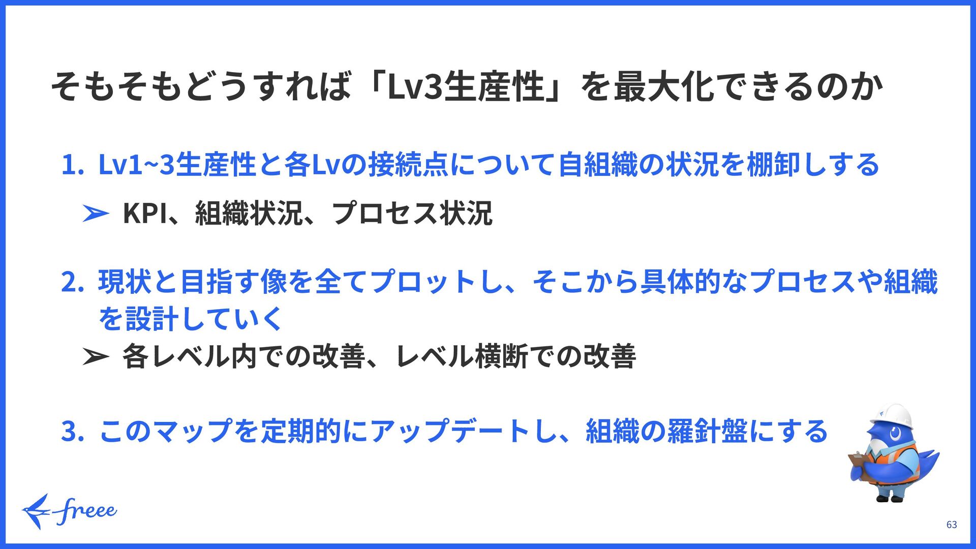3. このマップを定期的にアップデートし、組織の羅針盤にする そもそもどうすれば「Lv3⽣産性」を最⼤化できるのか