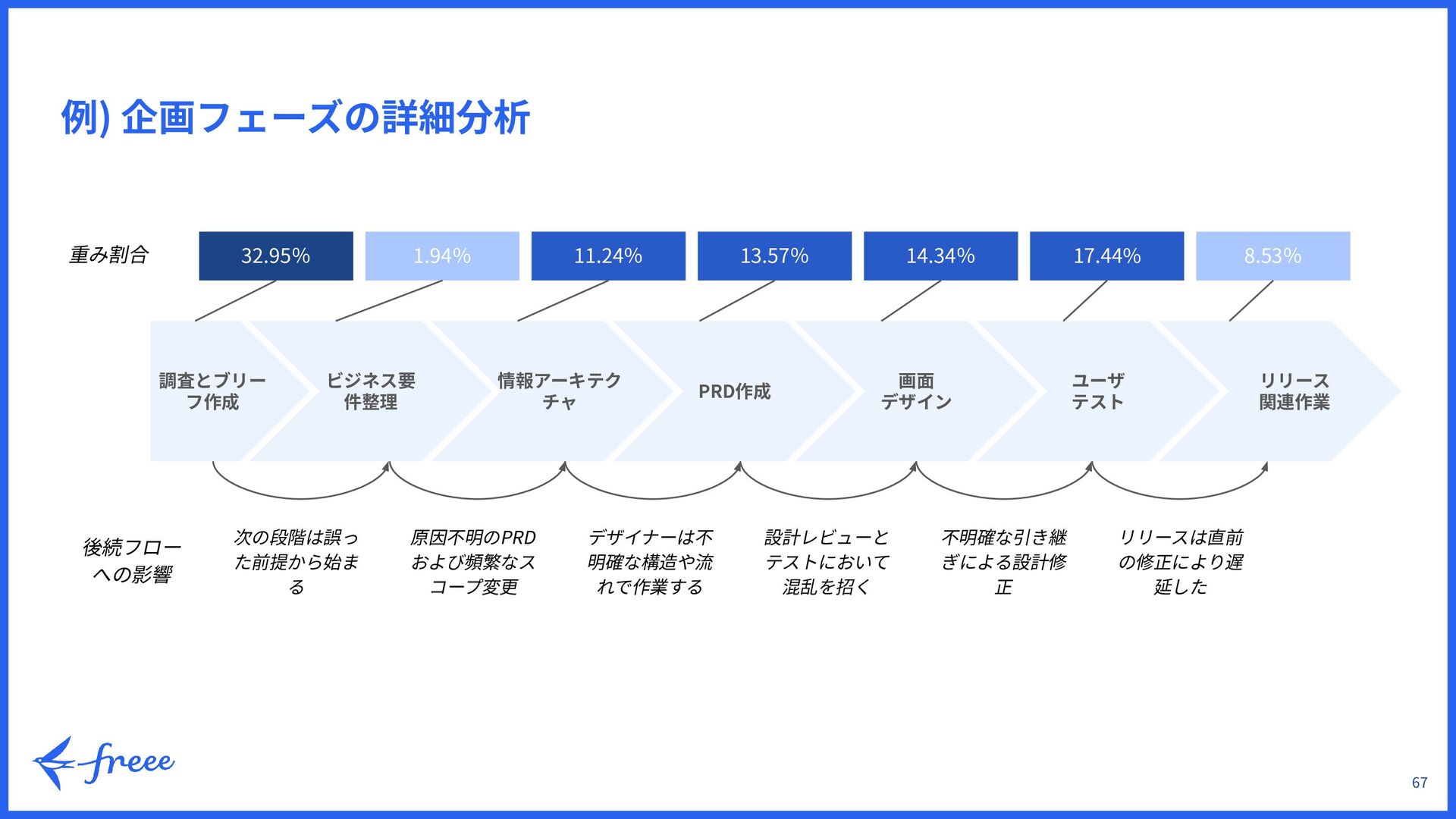 67 例) 企画フェーズの詳細分析 調査とブリー フ作成 ビジネス要 件整理 情報アーキテク チャ PRD作成