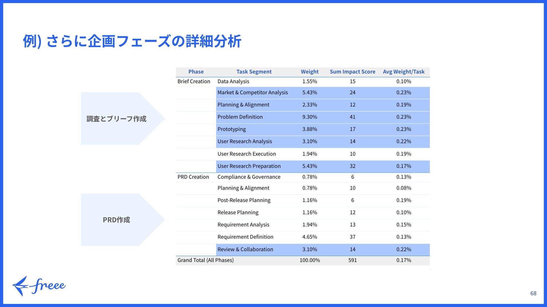 68 例) さらに企画フェーズの詳細分析 調査とブリーフ作成 PRD作成