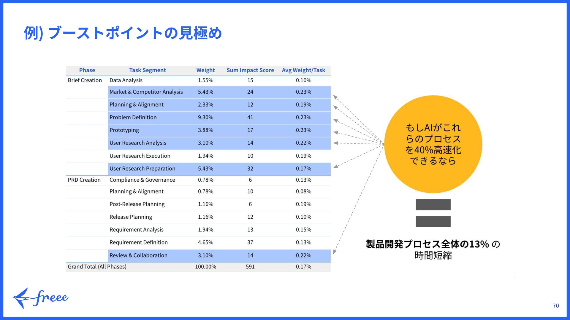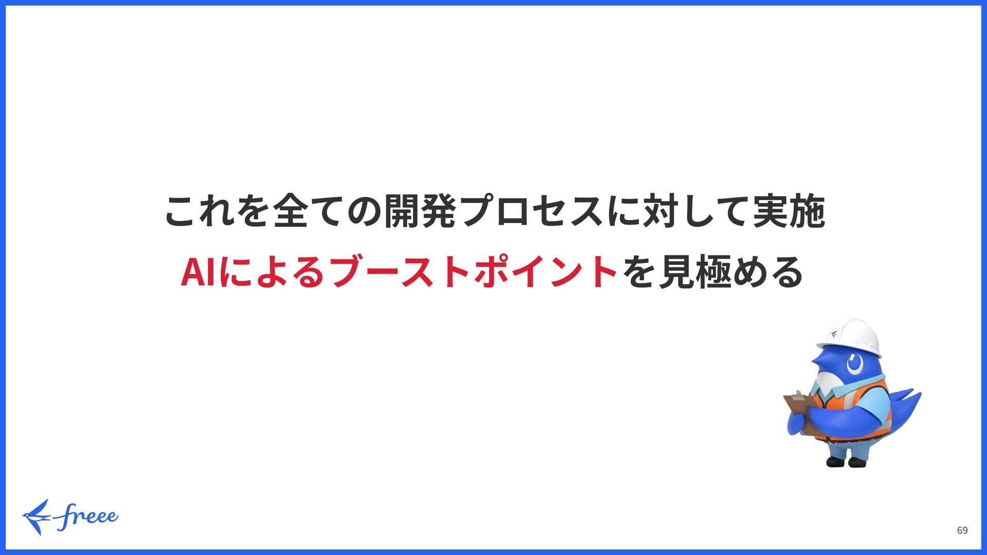 69 これを全ての開発プロセスに対して実施 AIによるブーストポイントを⾒極める