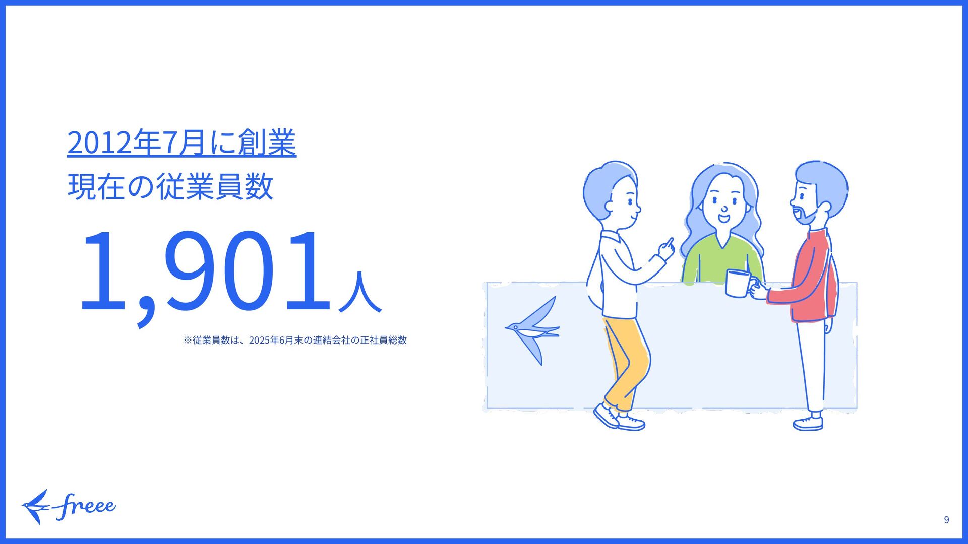 9 2012年7⽉に創業 現在の従業員数 1,901⼈ ※従業員数は、2025年6⽉末の連結会社の正社員総数