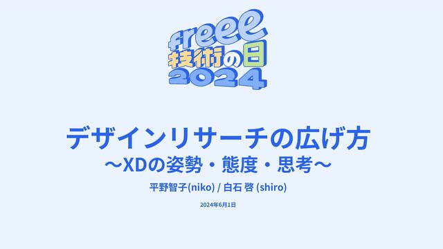 デザインリサーチの広げ⽅ 〜XDの姿勢‧態度‧思考〜 平野智⼦(niko) / ⽩⽯ 啓 (shiro) 2024年6⽉1⽇